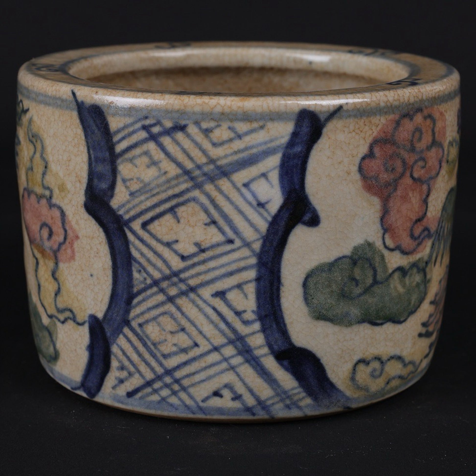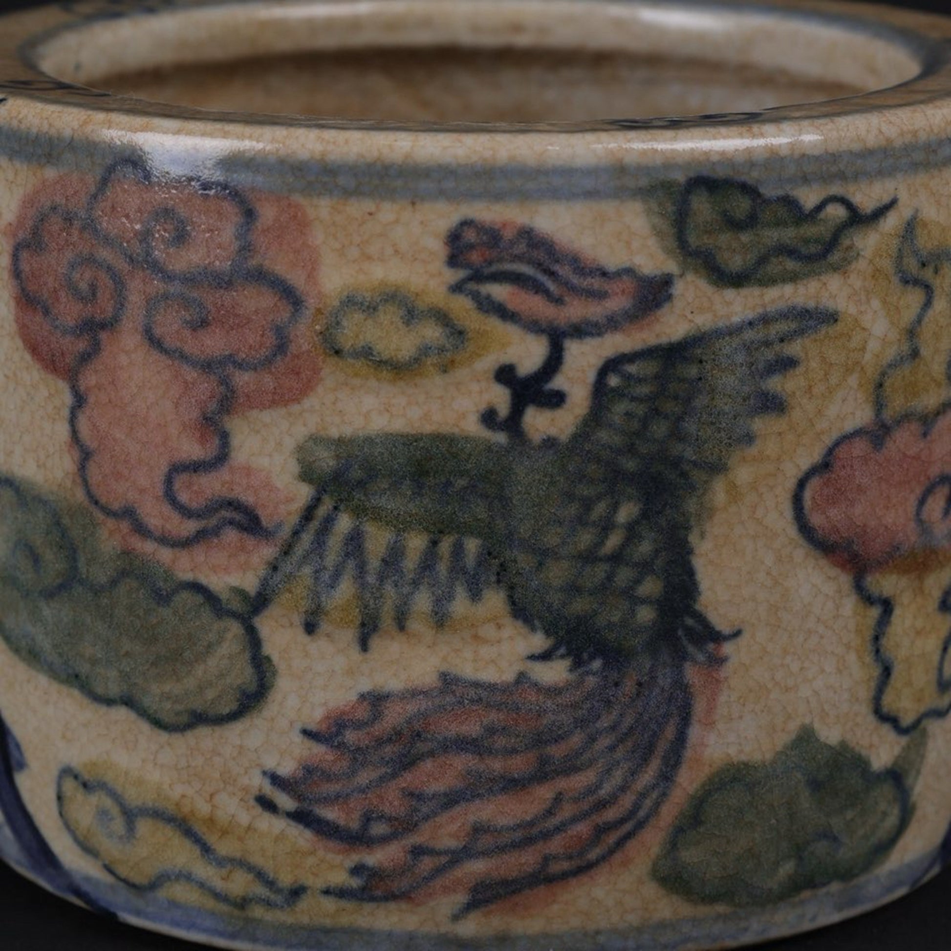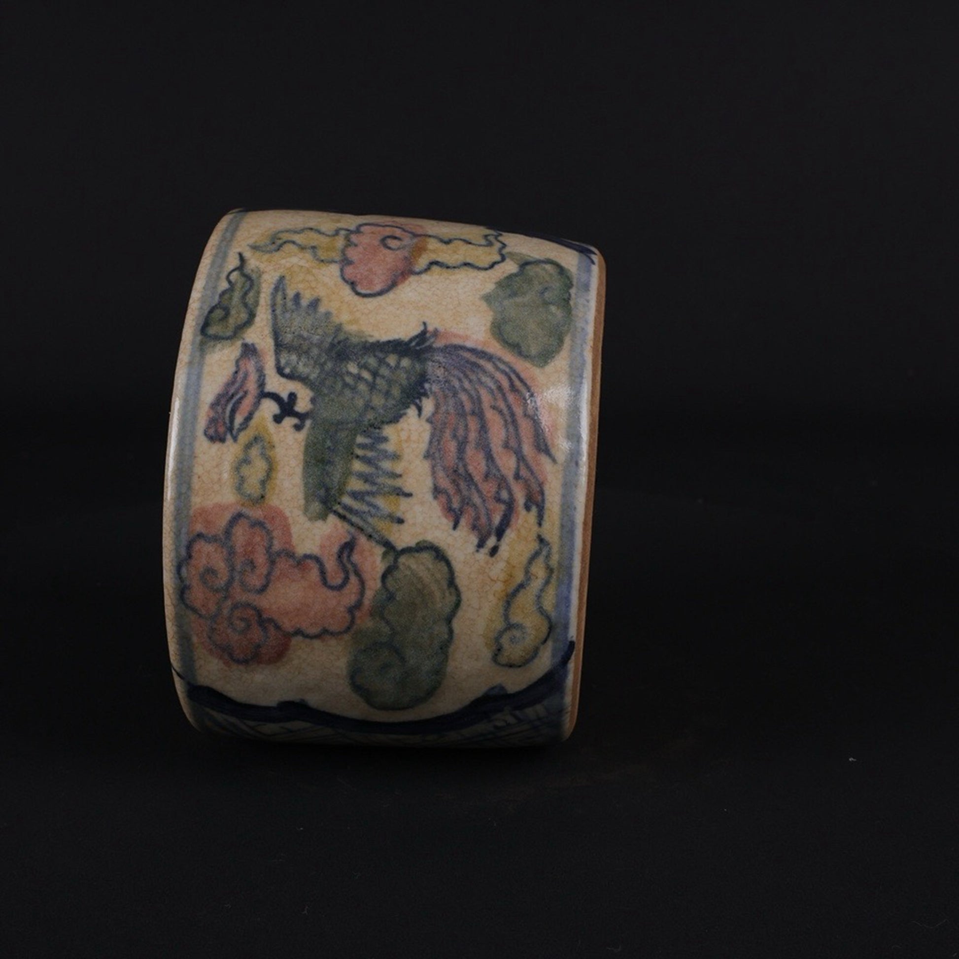 Small pen holder with a pattern of open color, open windows, double phoenixes presenting auspiciousness