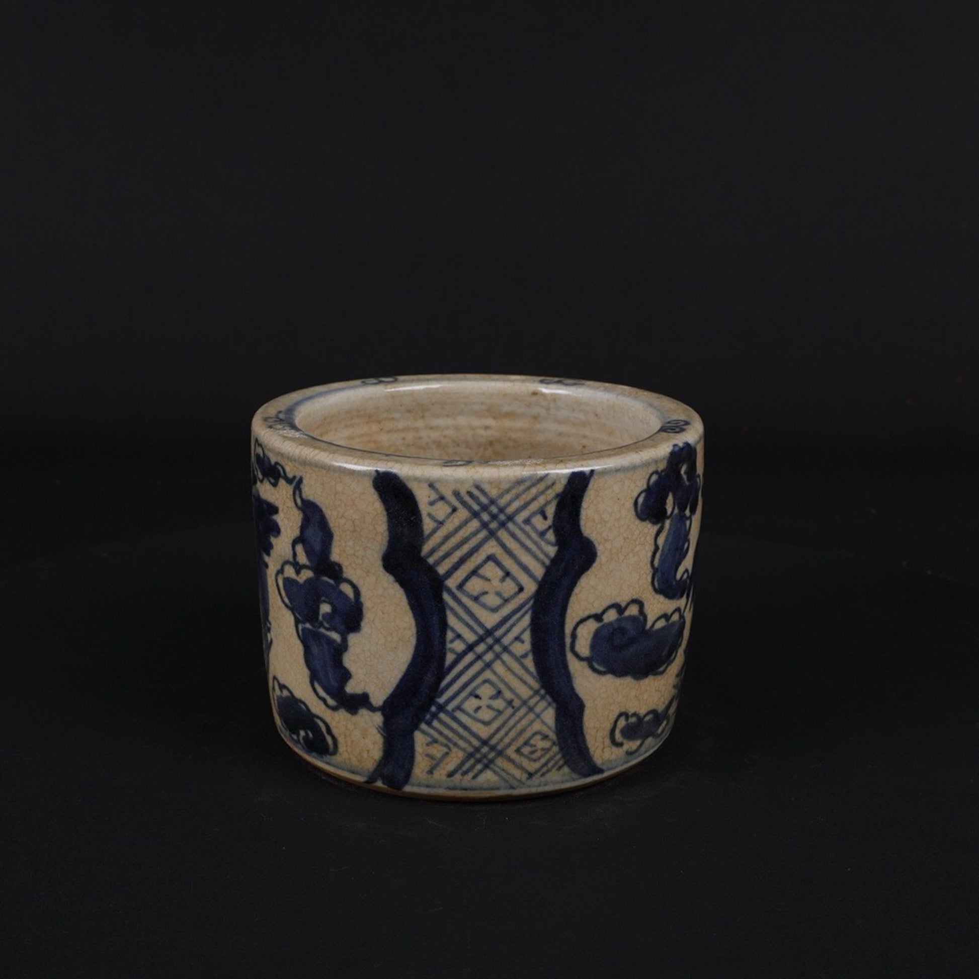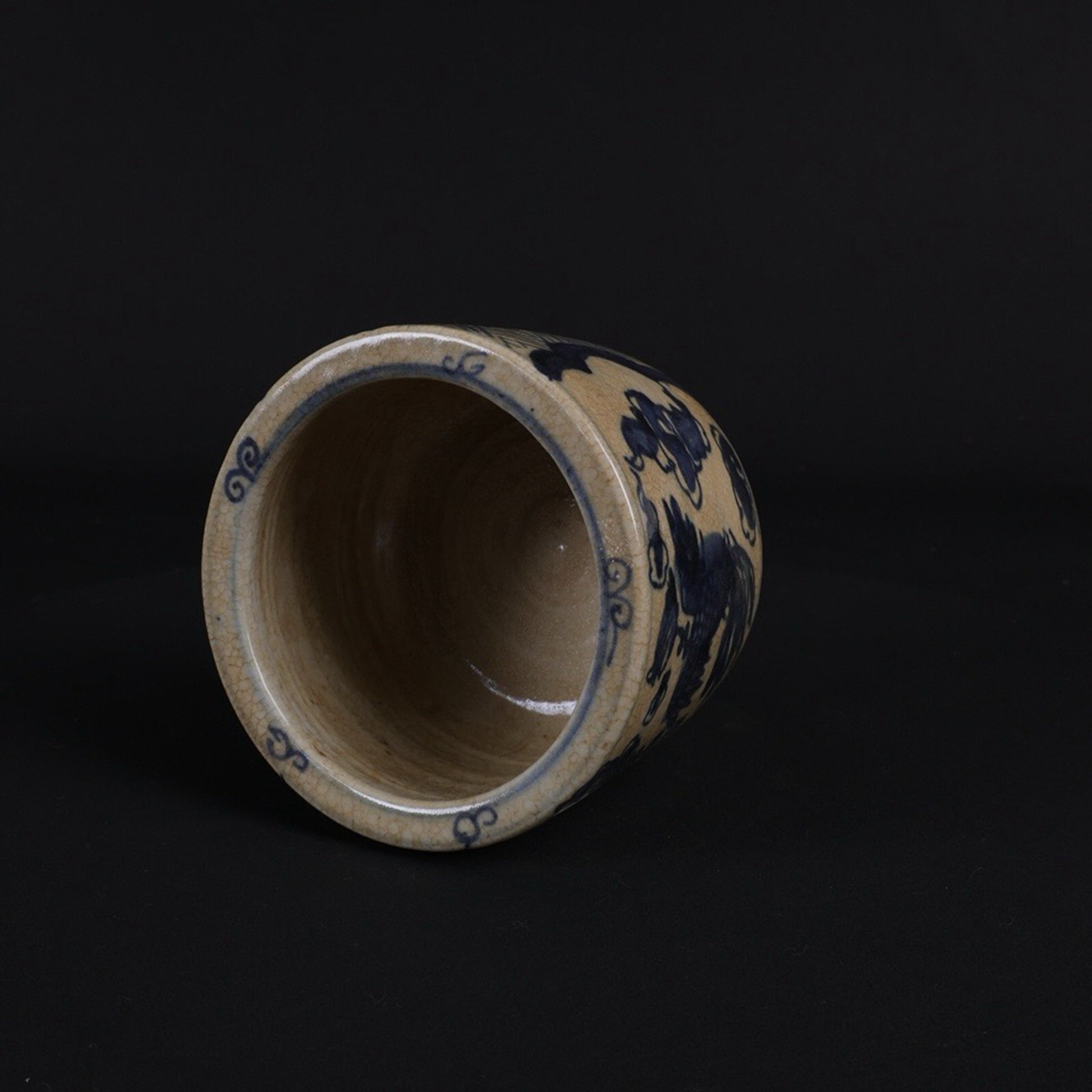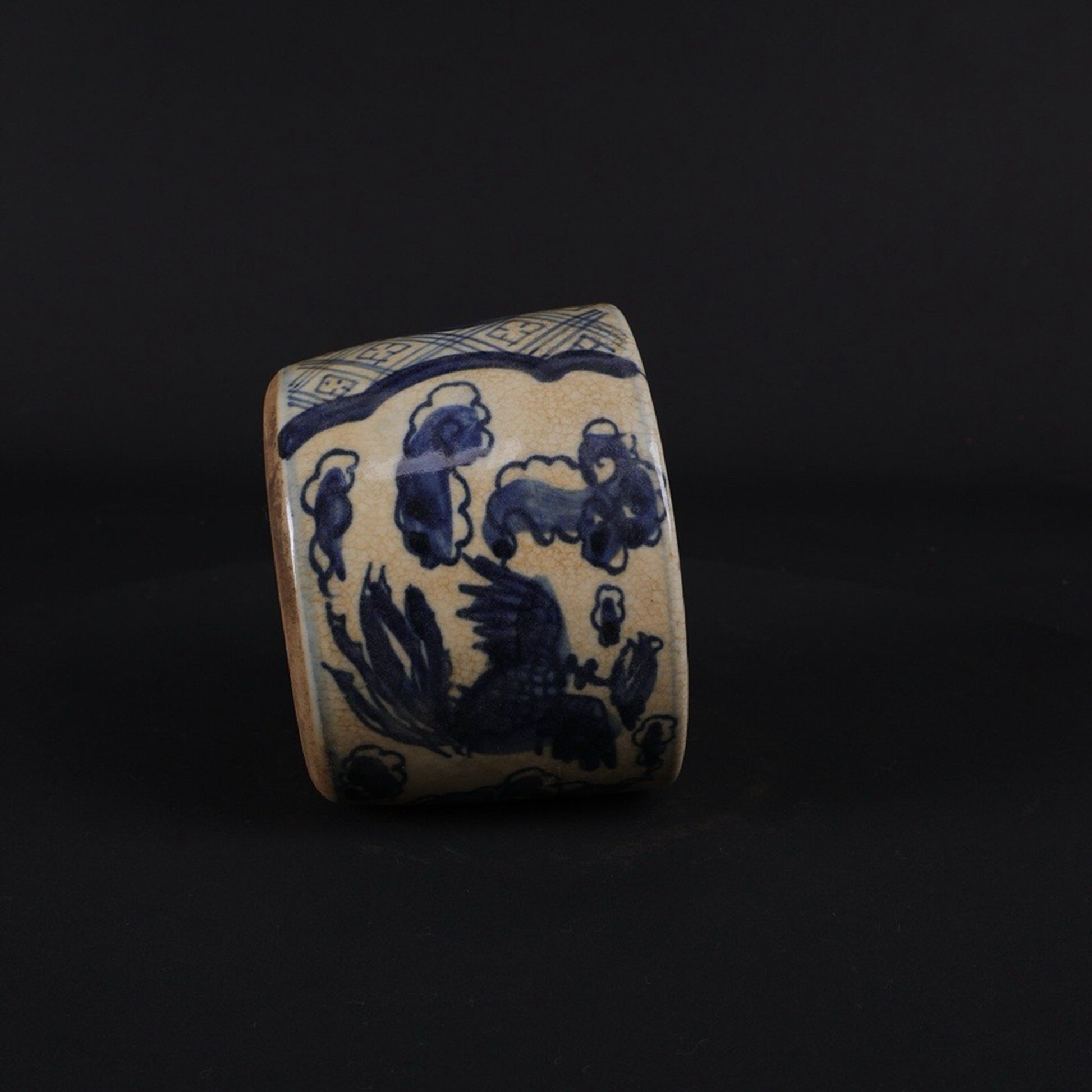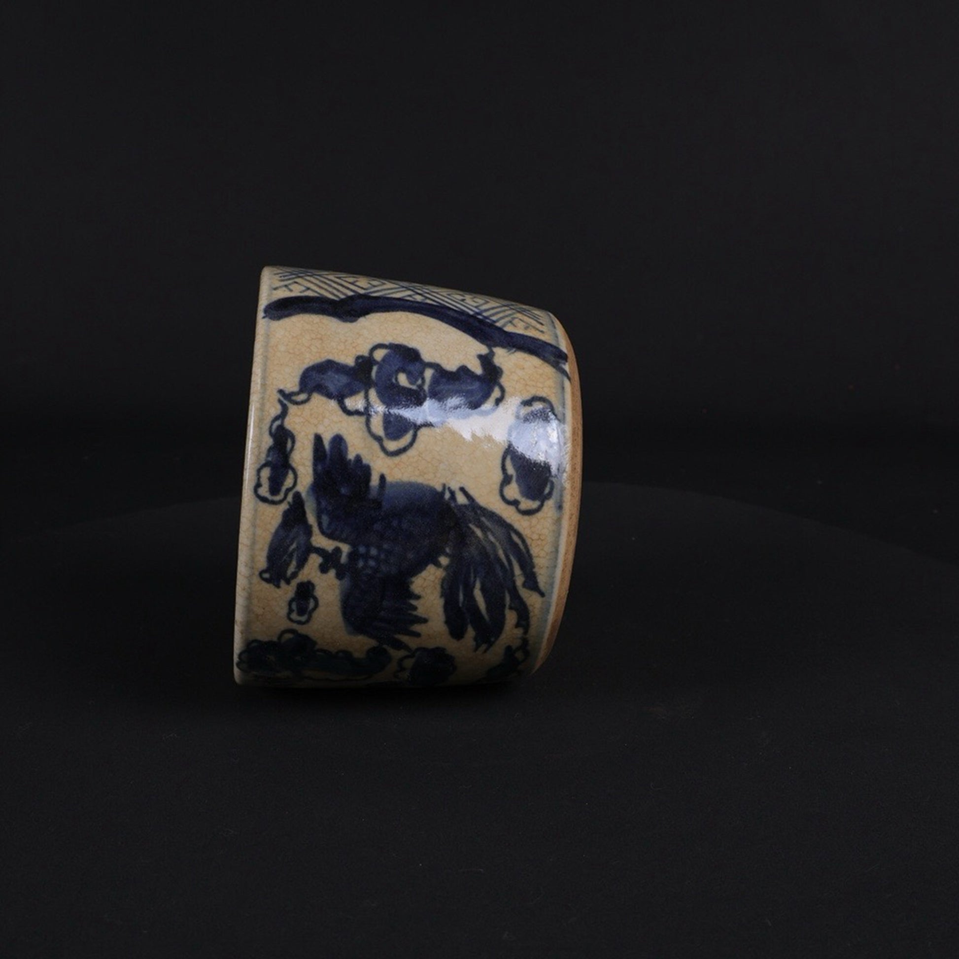 Small pen holder with open blue and white design, twin phoenixes presenting auspicious patterns