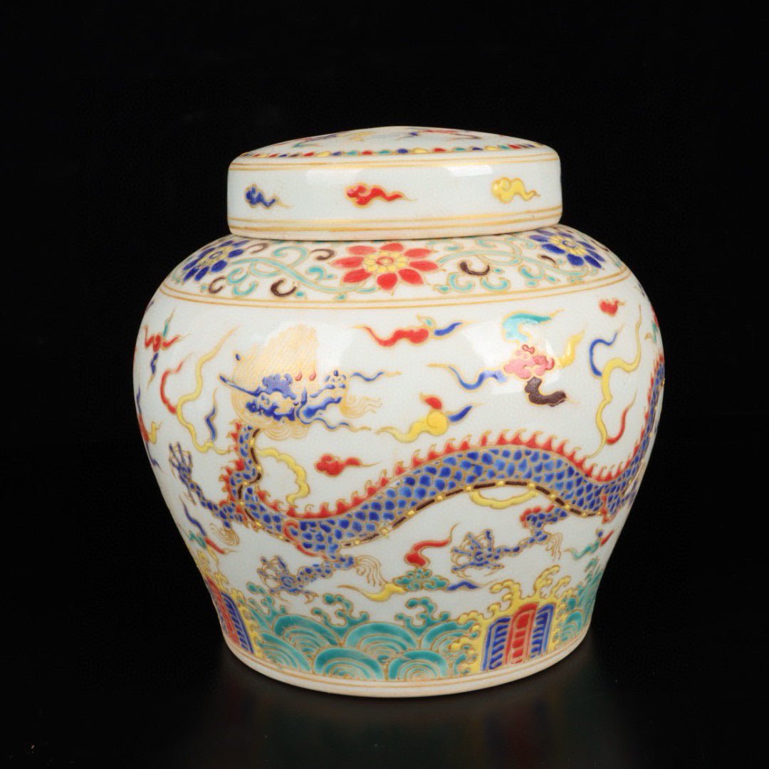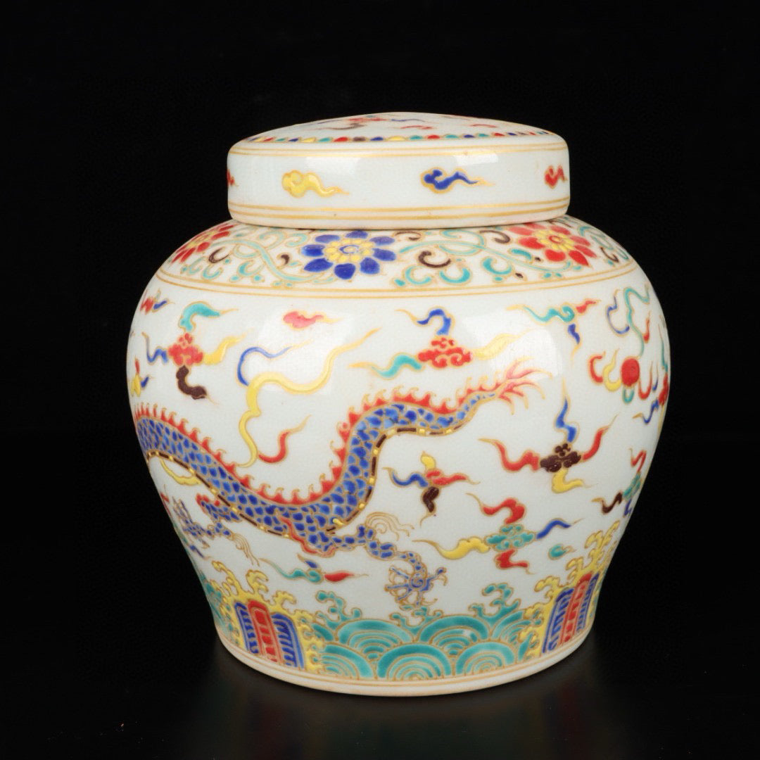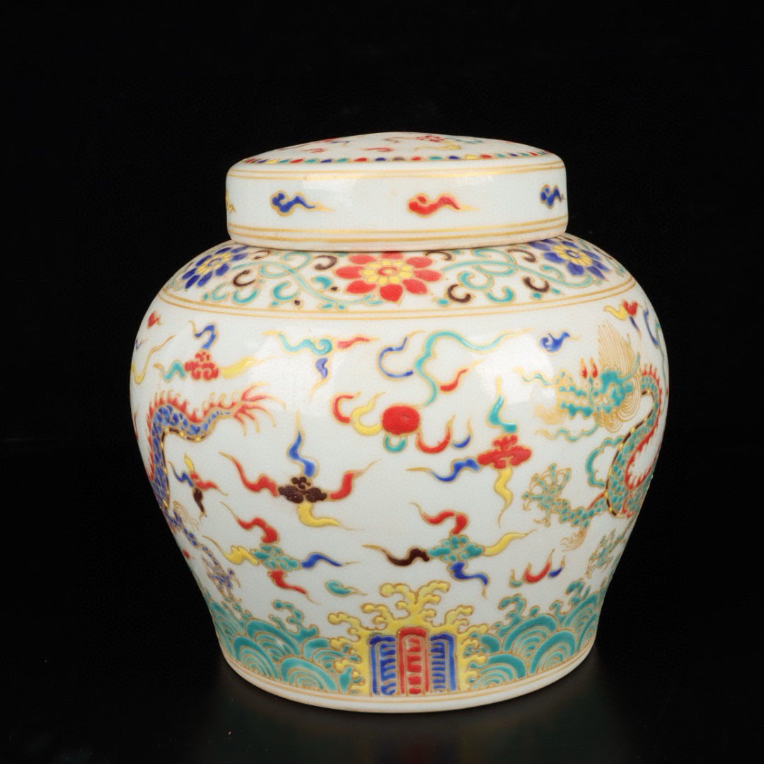 Three color cloud dragon patterned jar