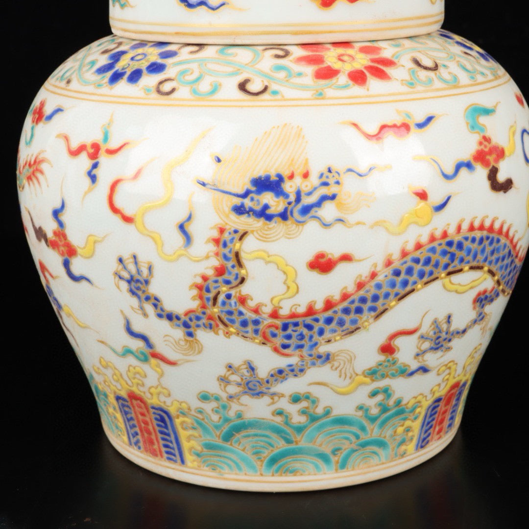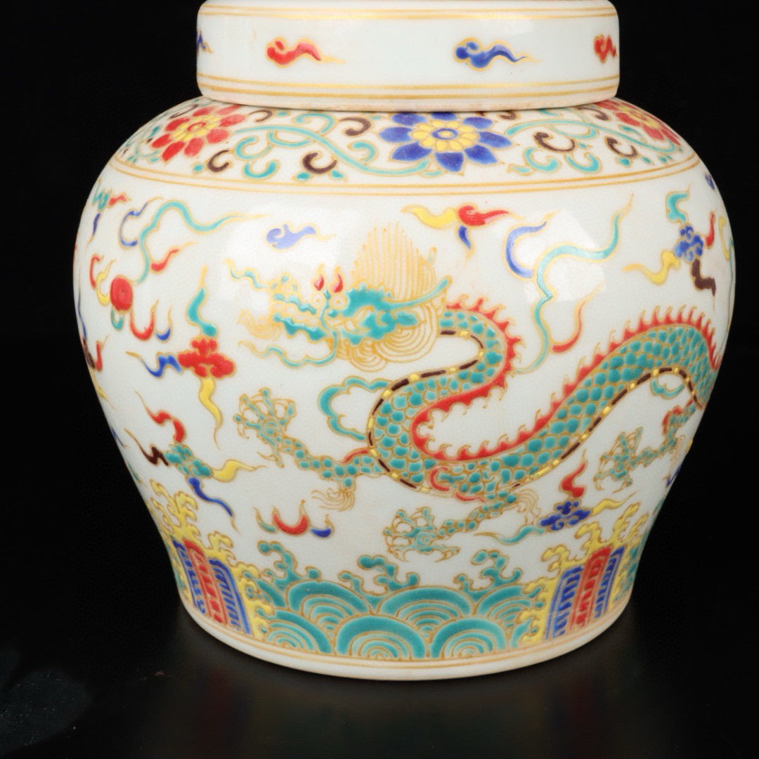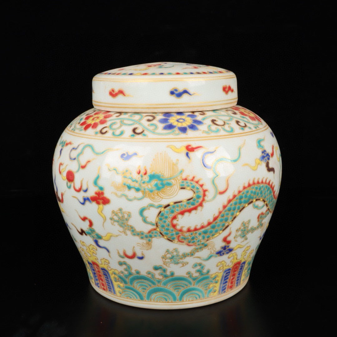 Three color cloud dragon patterned jar