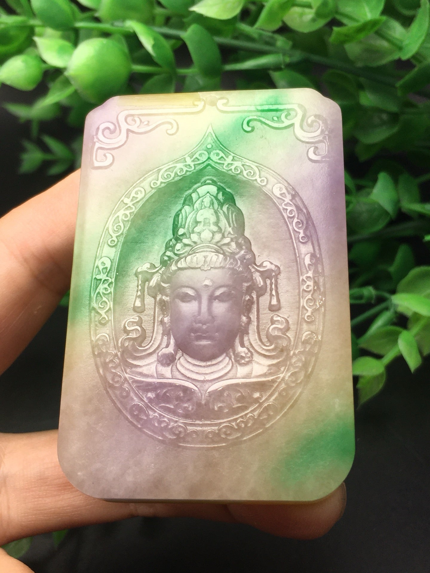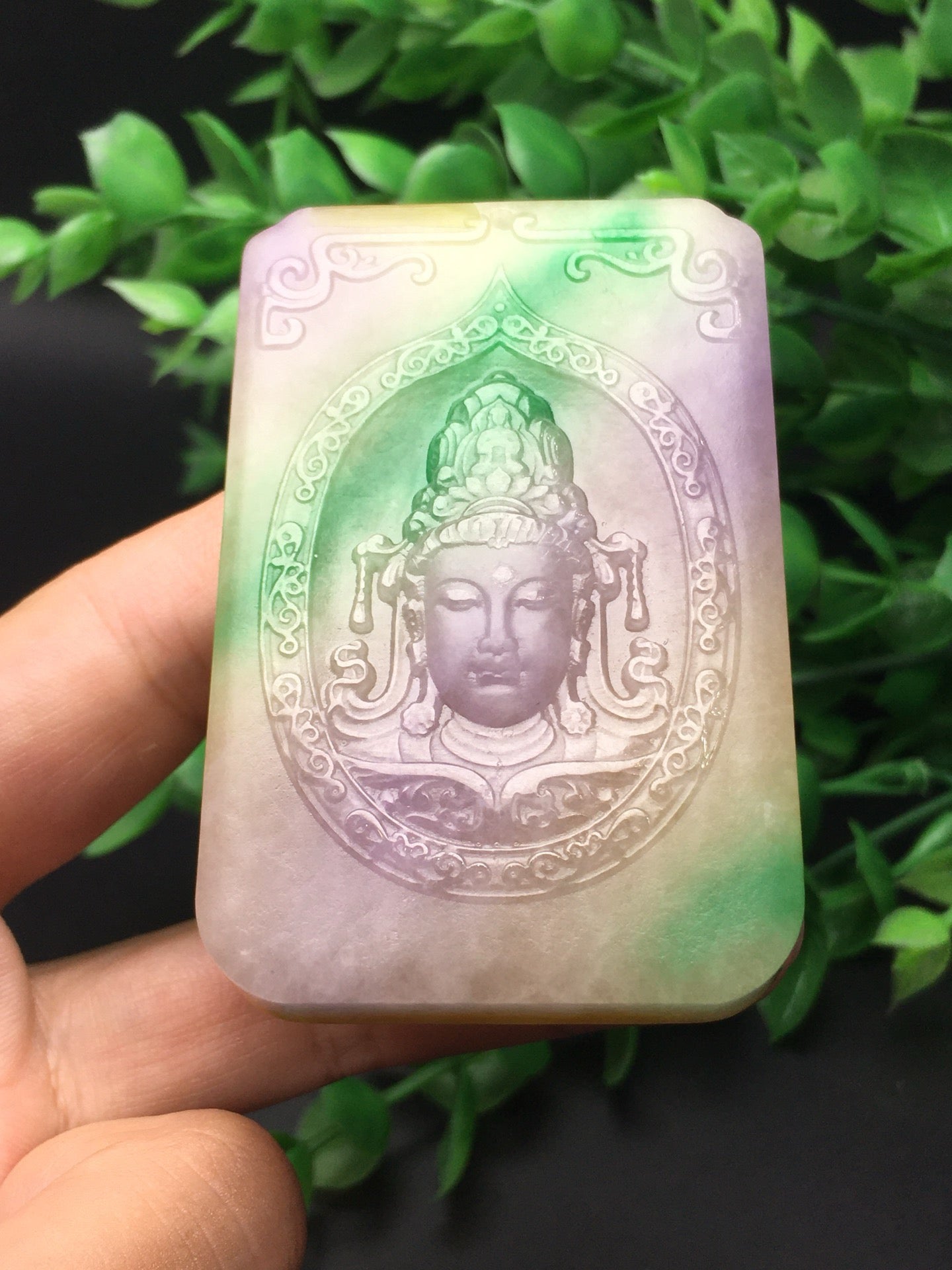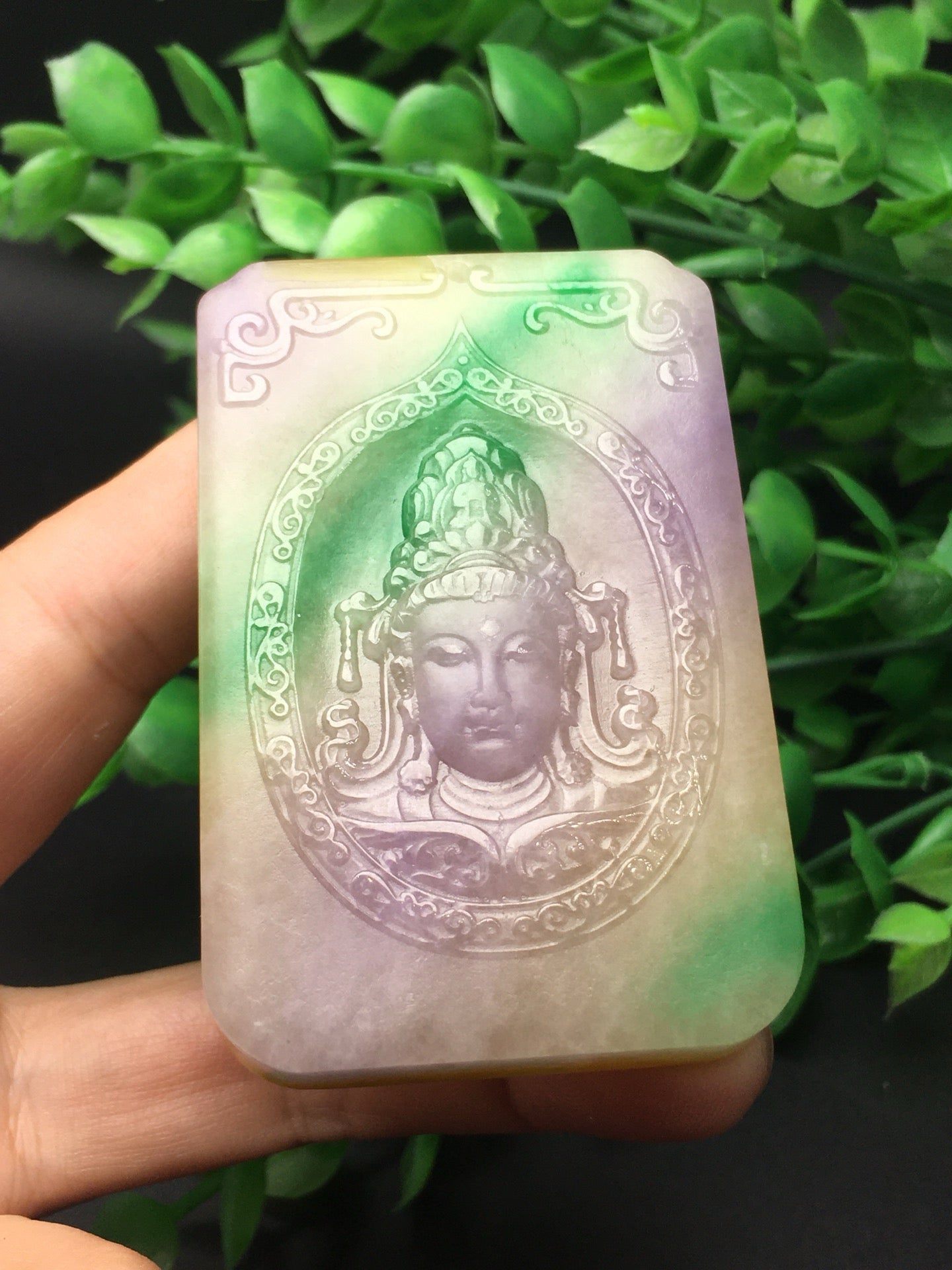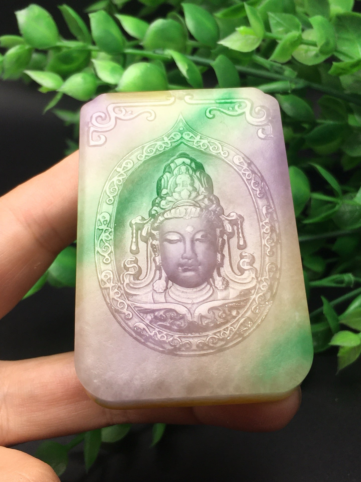 Three color jade plaque frosted Guanyin