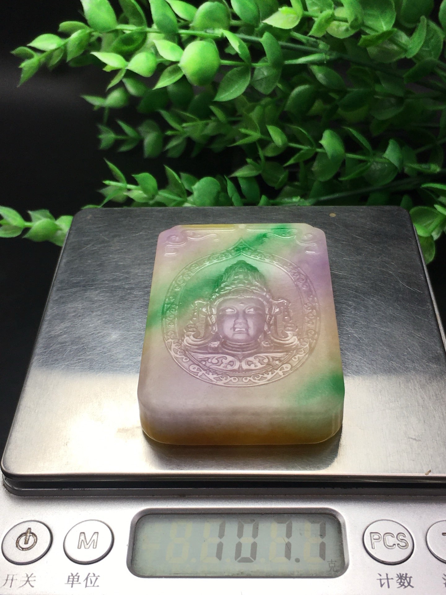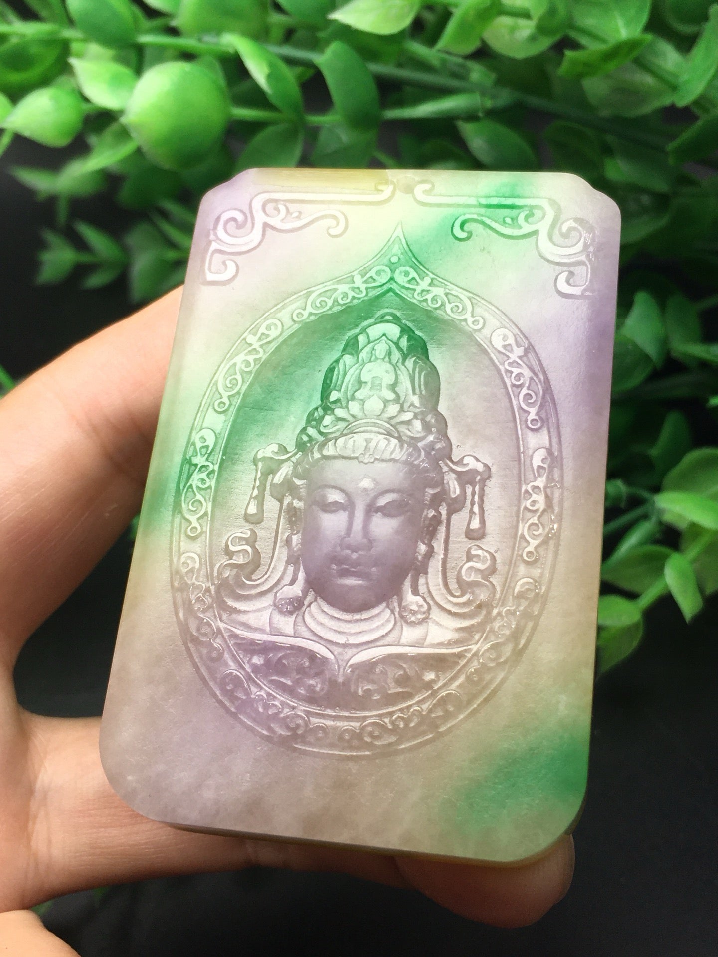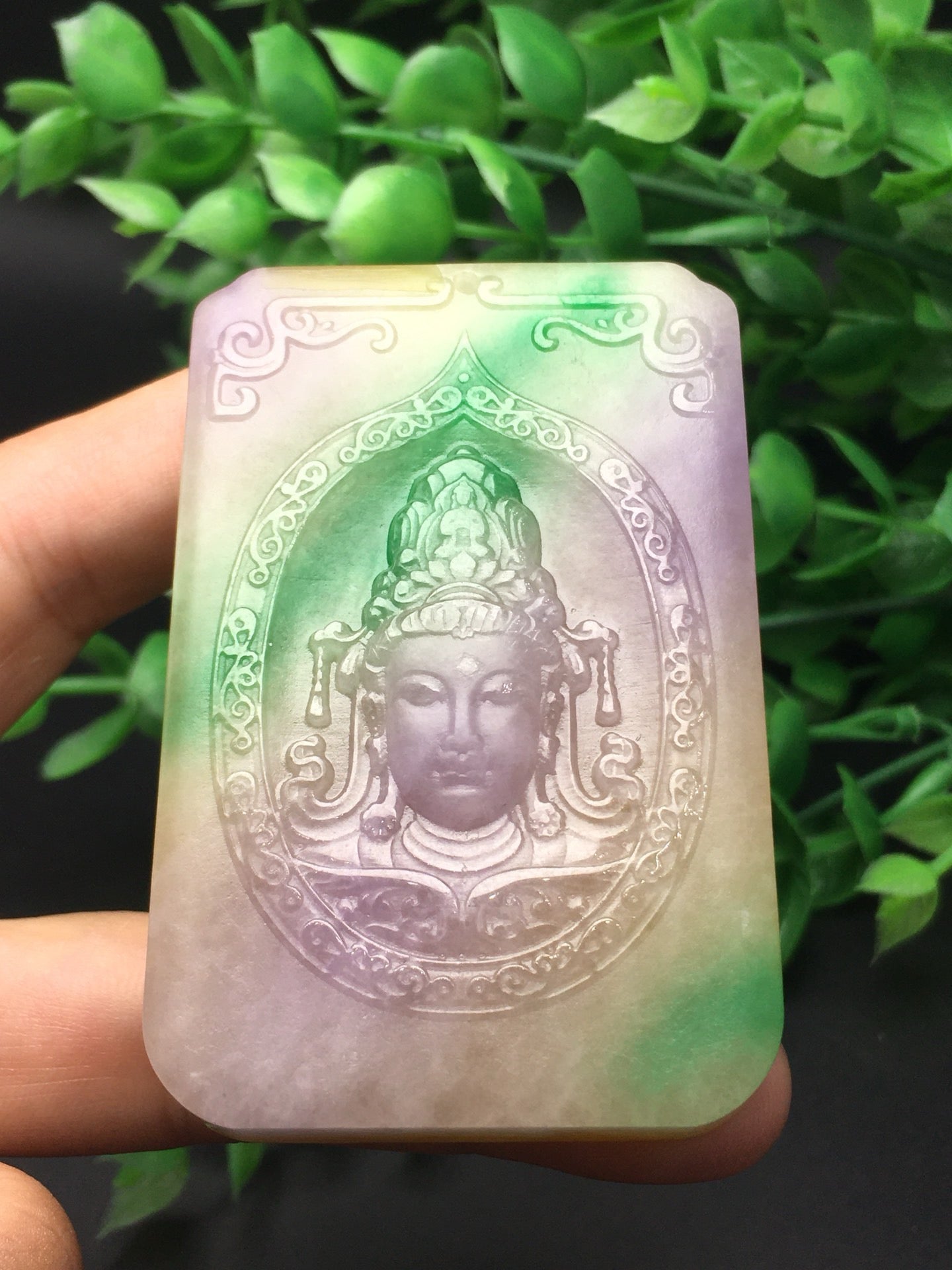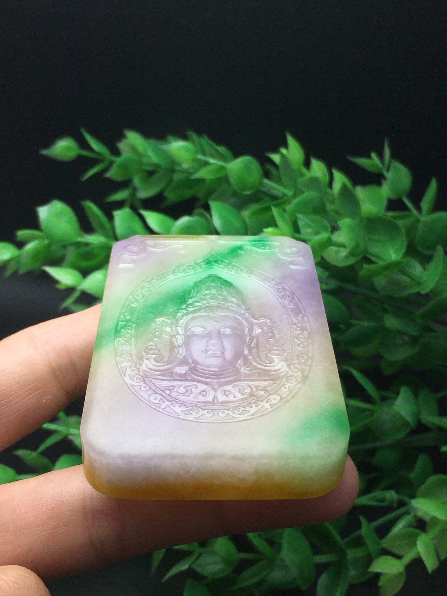Three color jade plaque frosted Guanyin