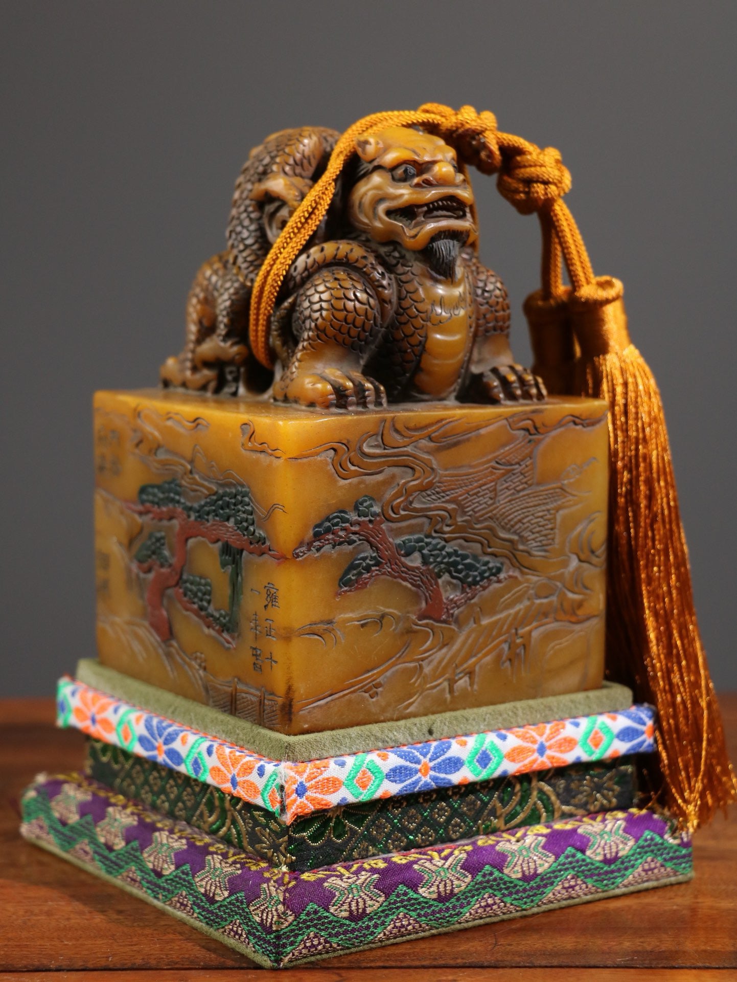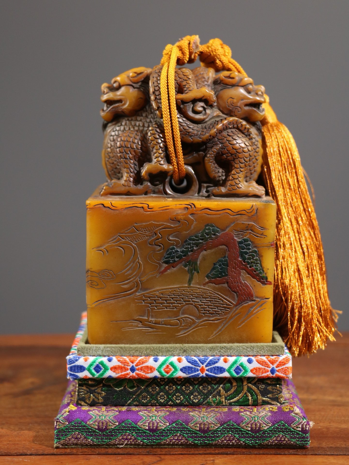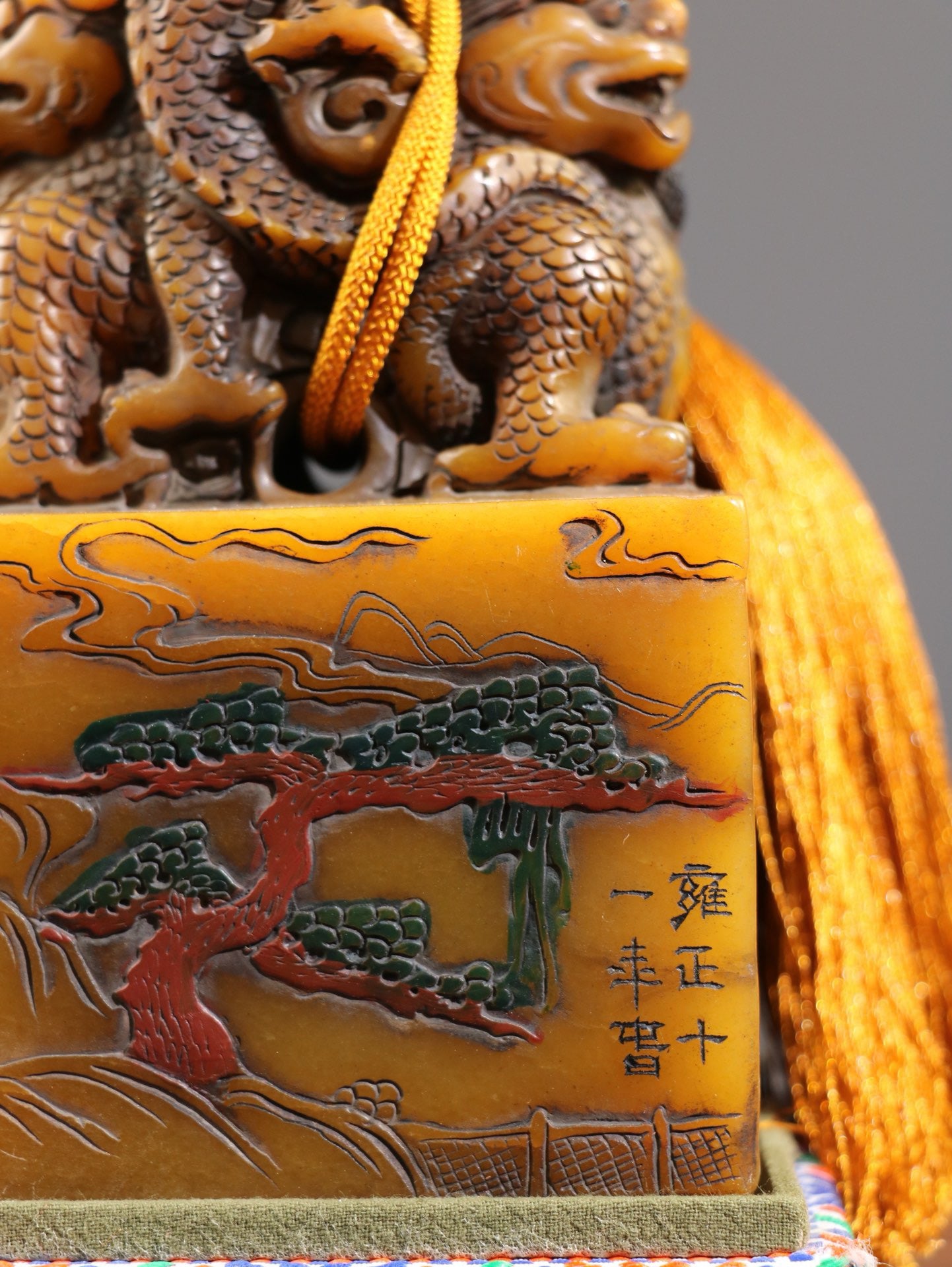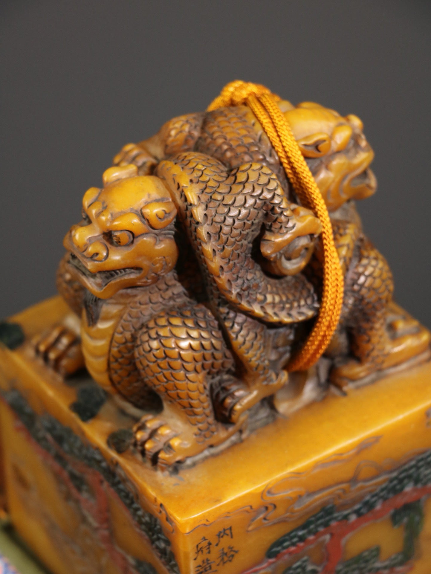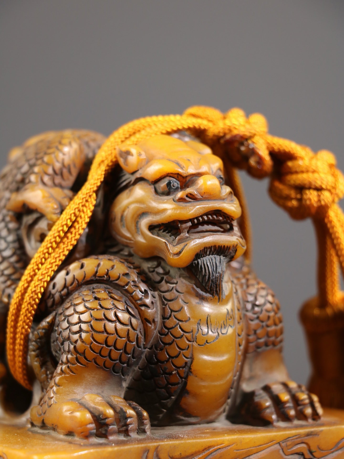 Tian Huang Shi Hard Material Malt Yellow Carved Divine Dragon Guardian Jade Seal