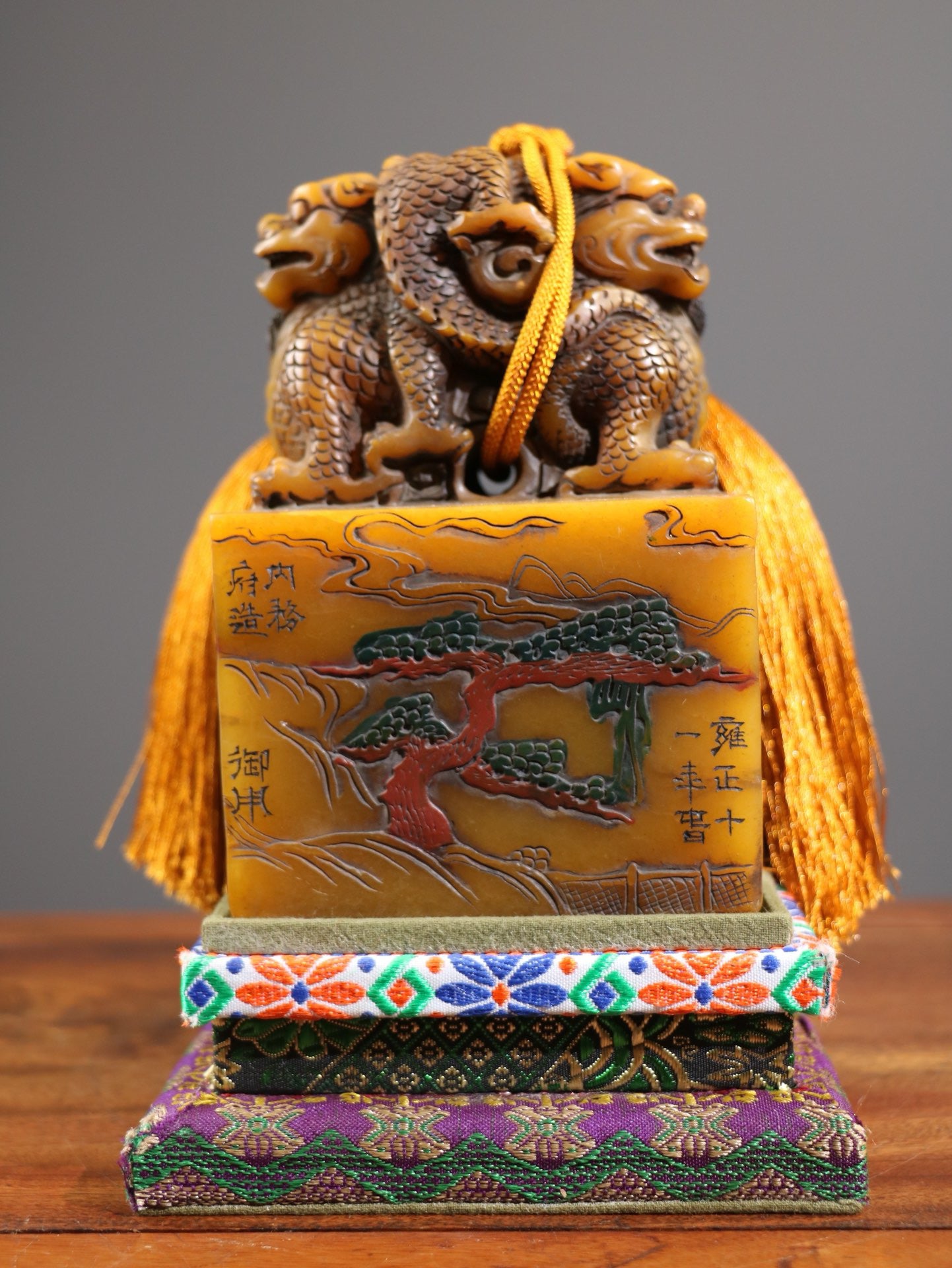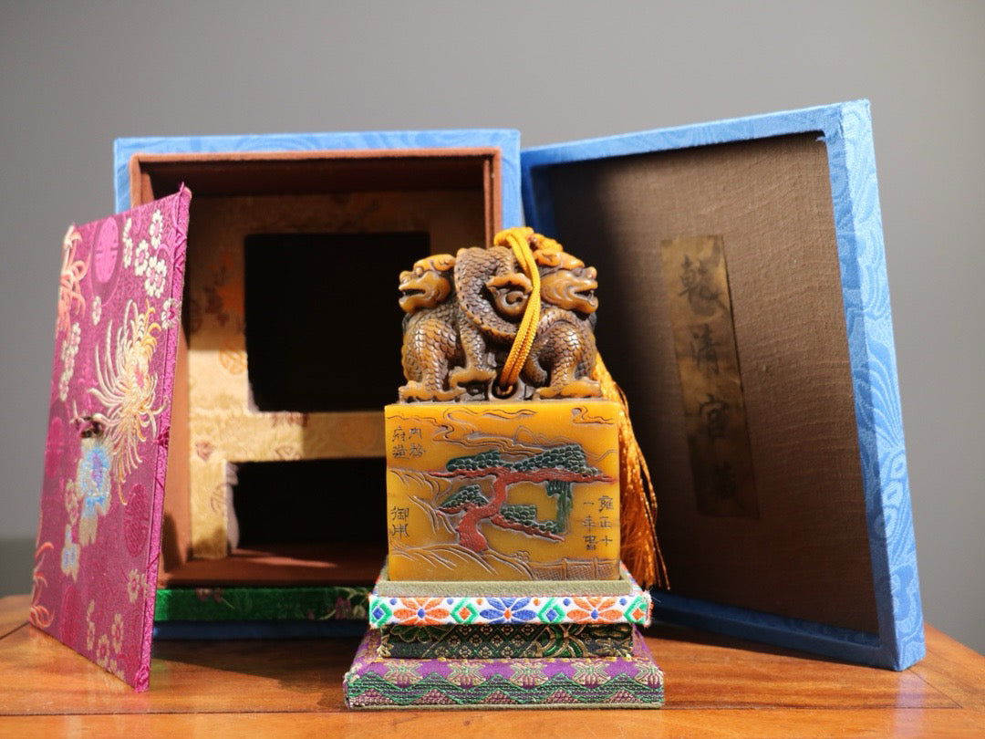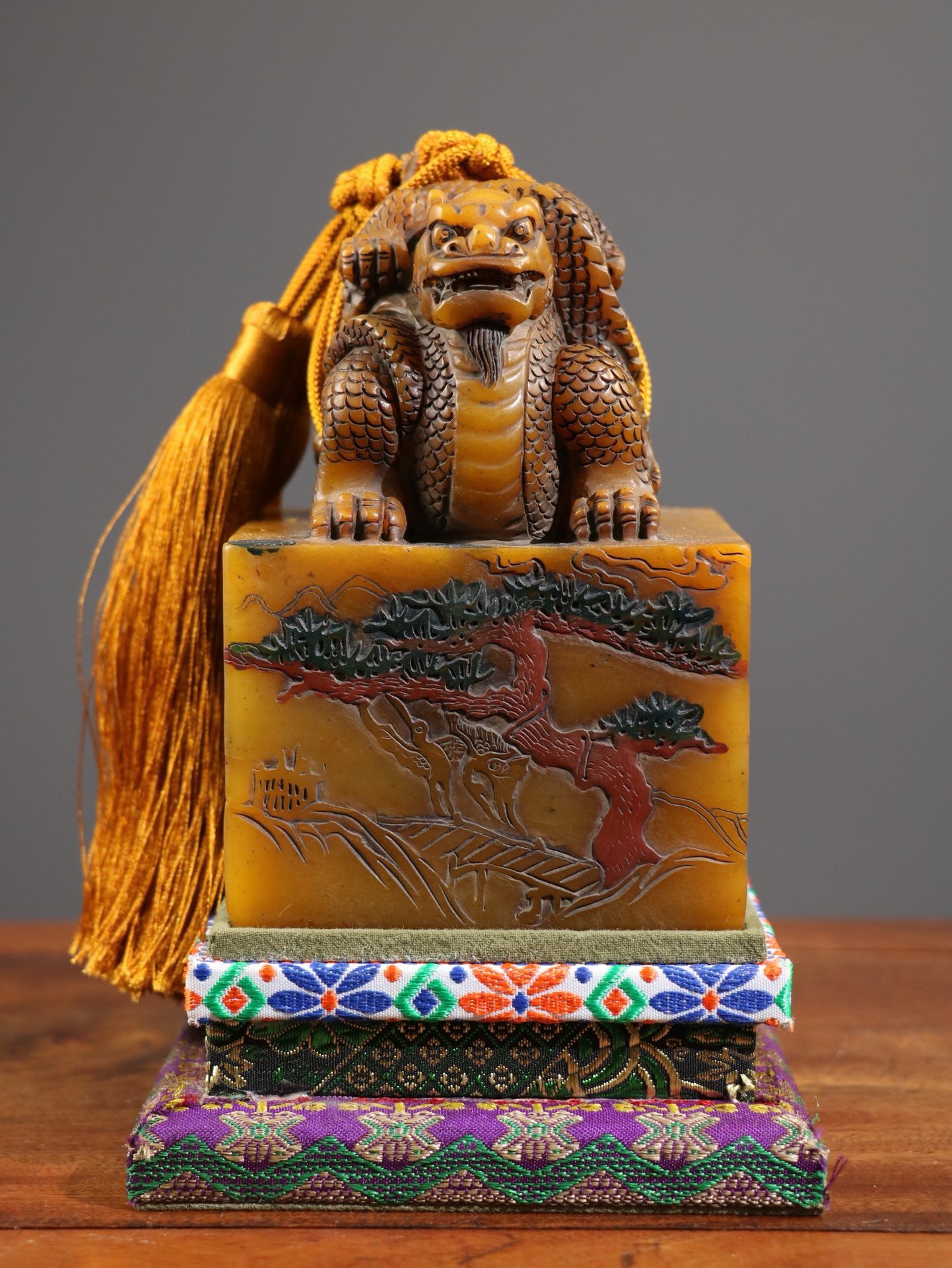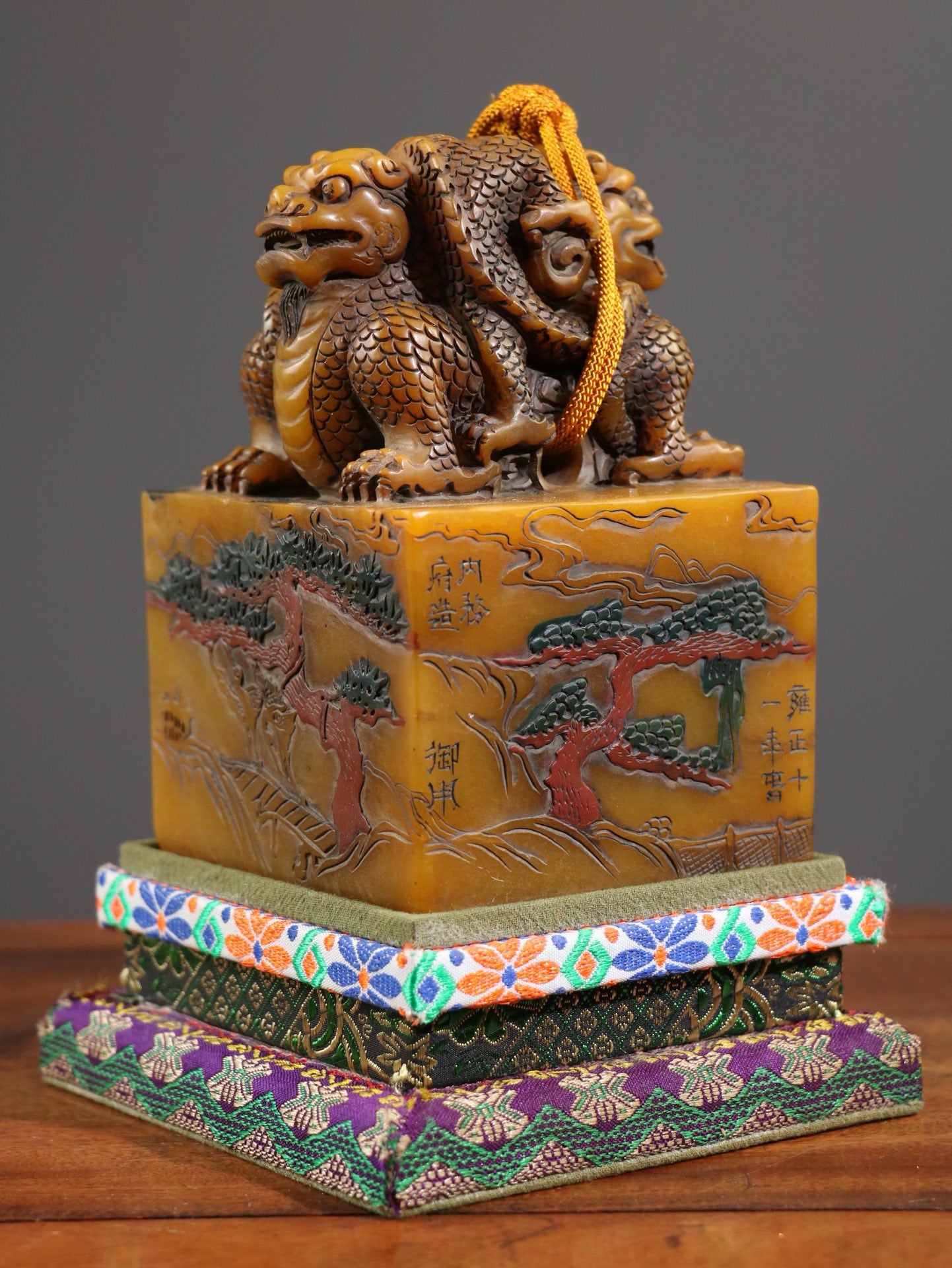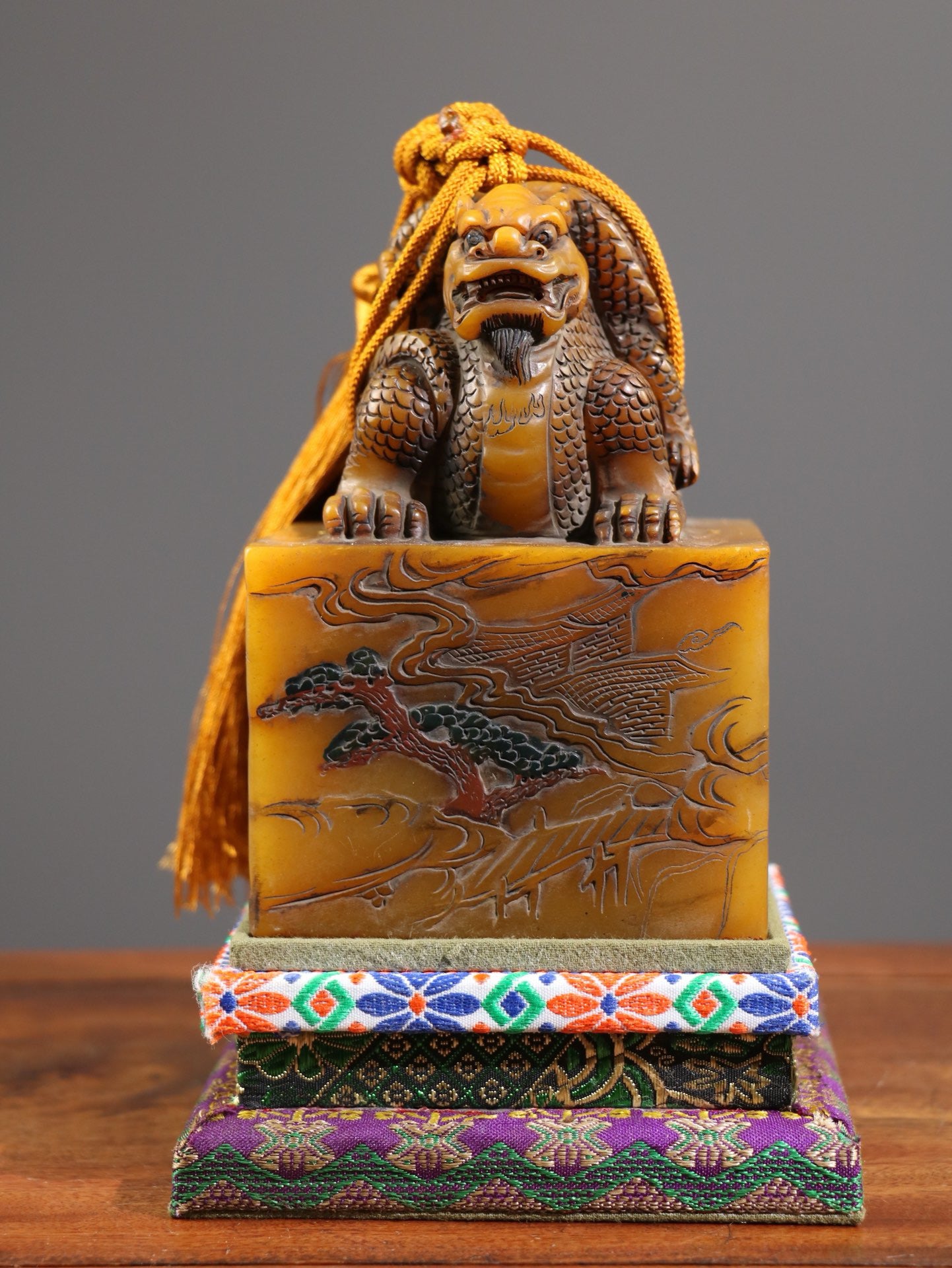 Tian Huang Shi Hard Material Malt Yellow Carved Divine Dragon Guardian Jade Seal