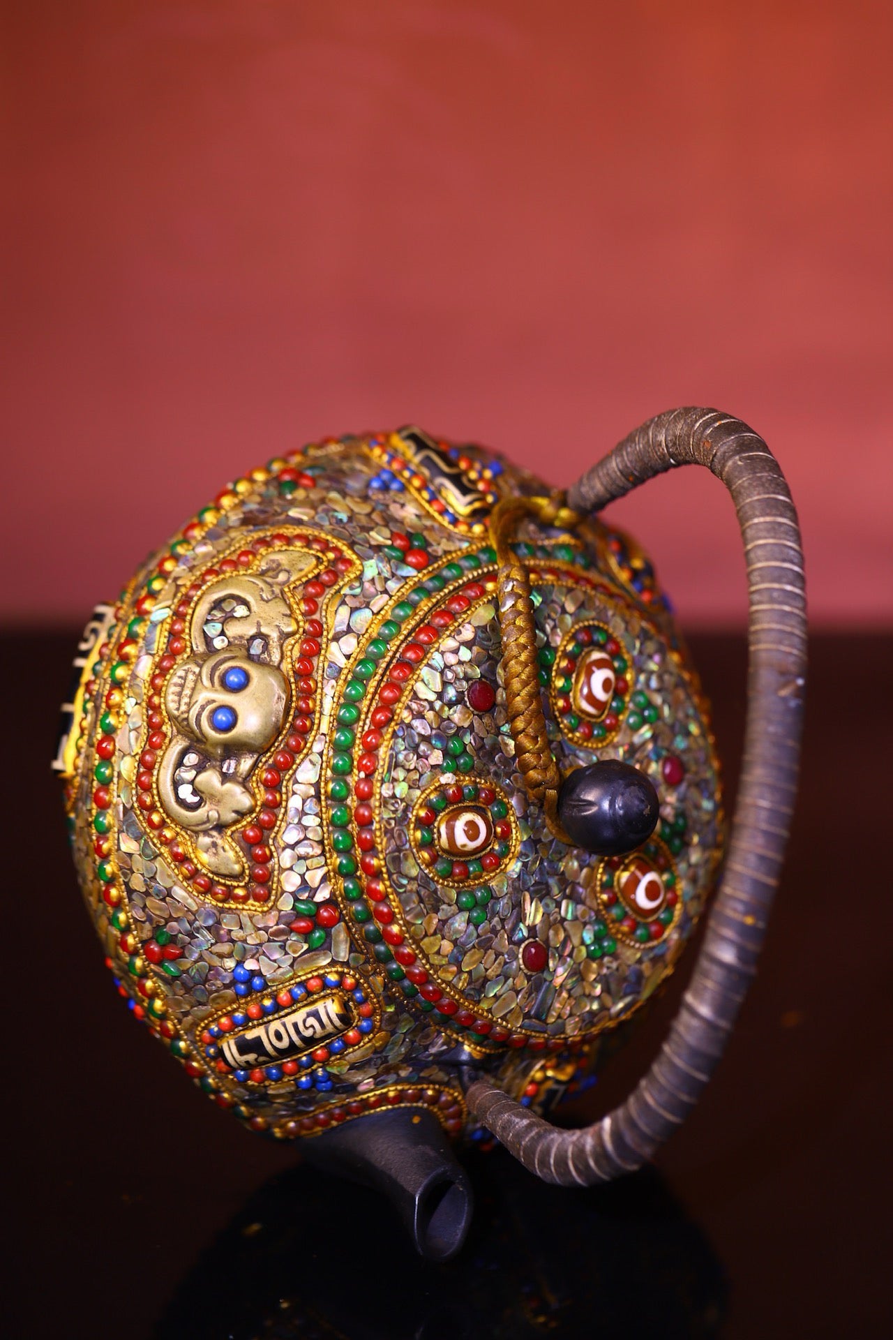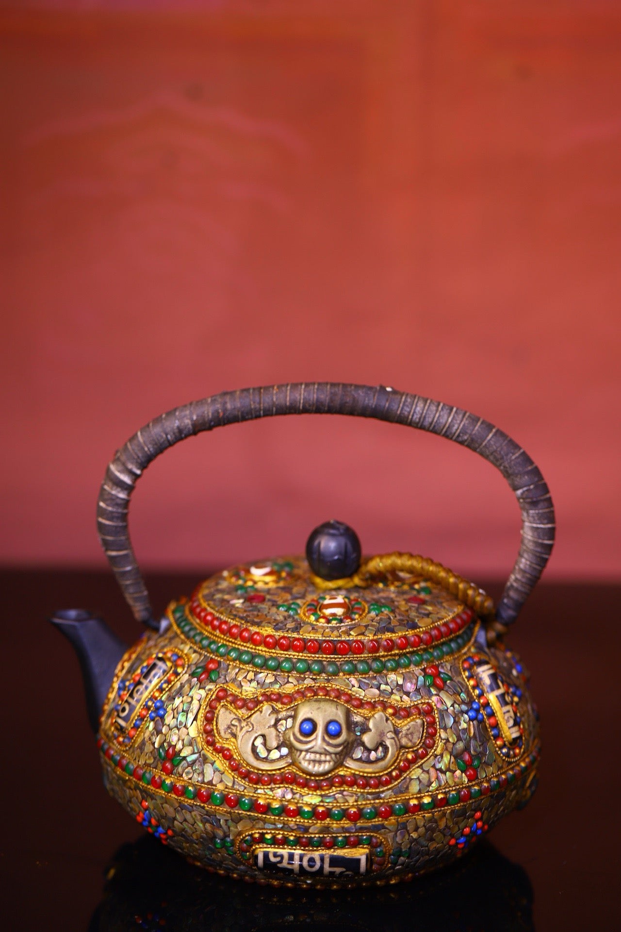 Tiantie Pure Handmade Knocking, Carving, and Handmade Thread Embedding Gemstone Butter Pot