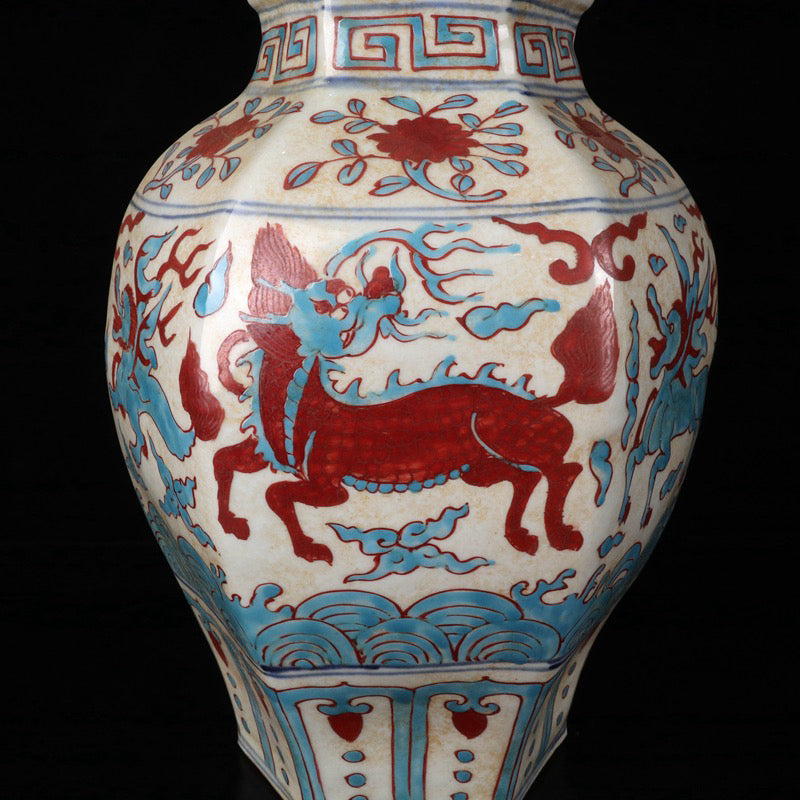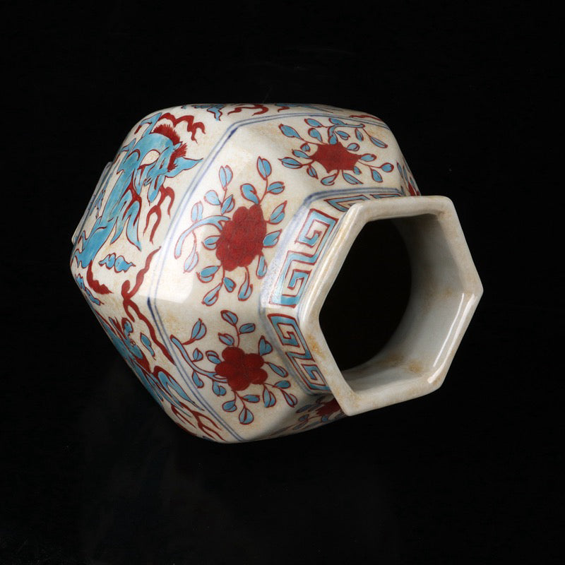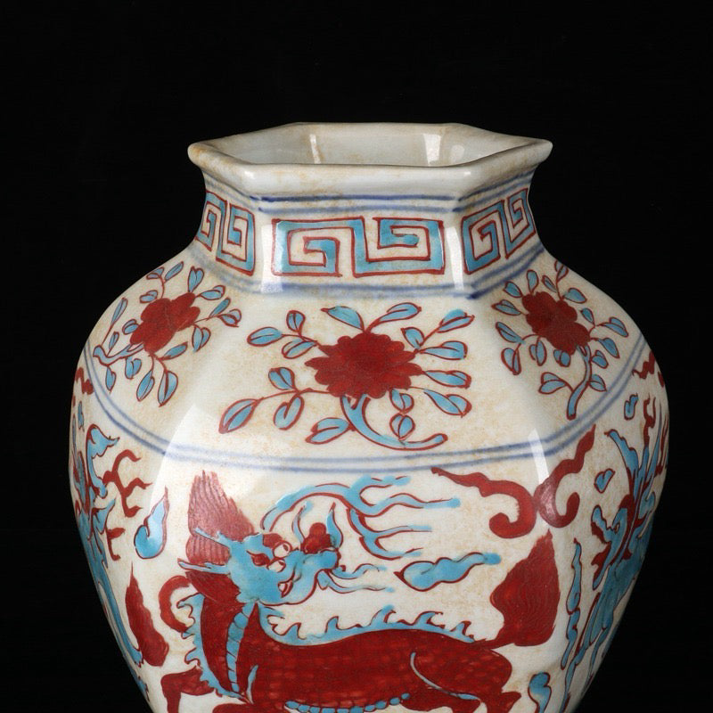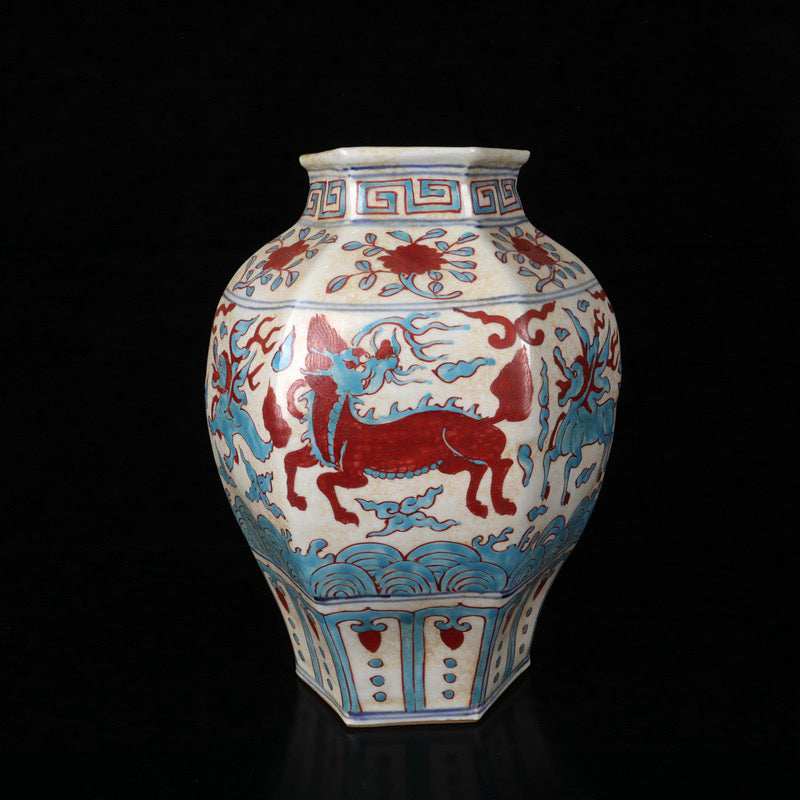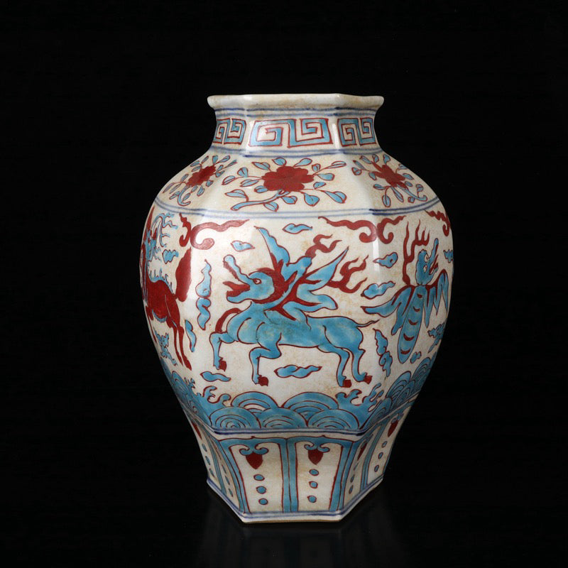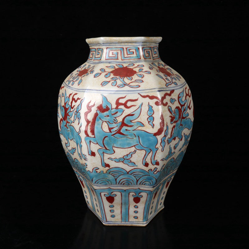 Triple color auspicious beast pattern hexagonal altar