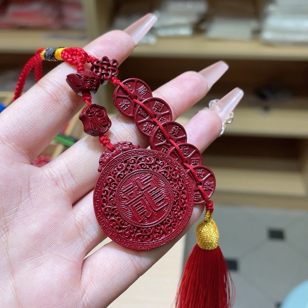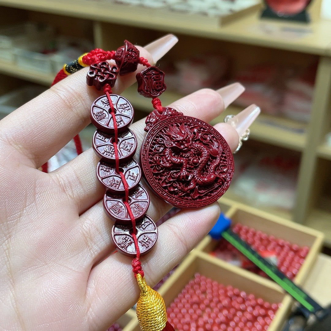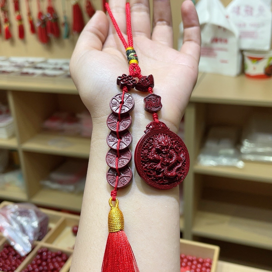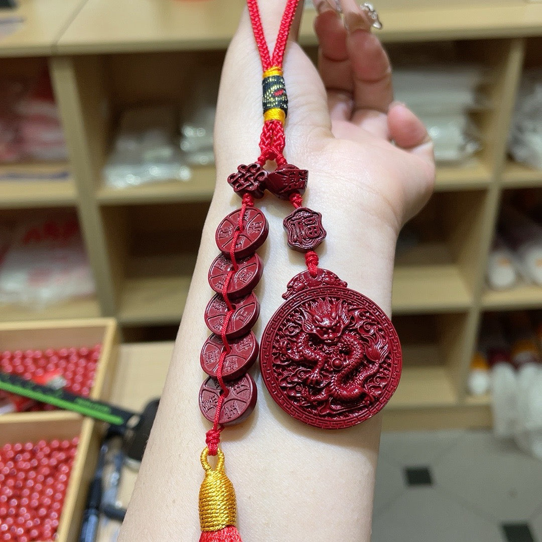 Vermilion Sand Purple Sand Dragon Card with Five Emperors Coin Car Hanger