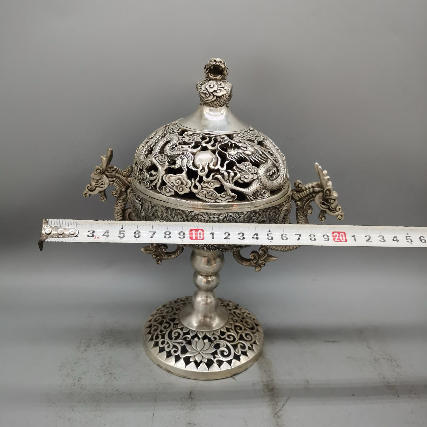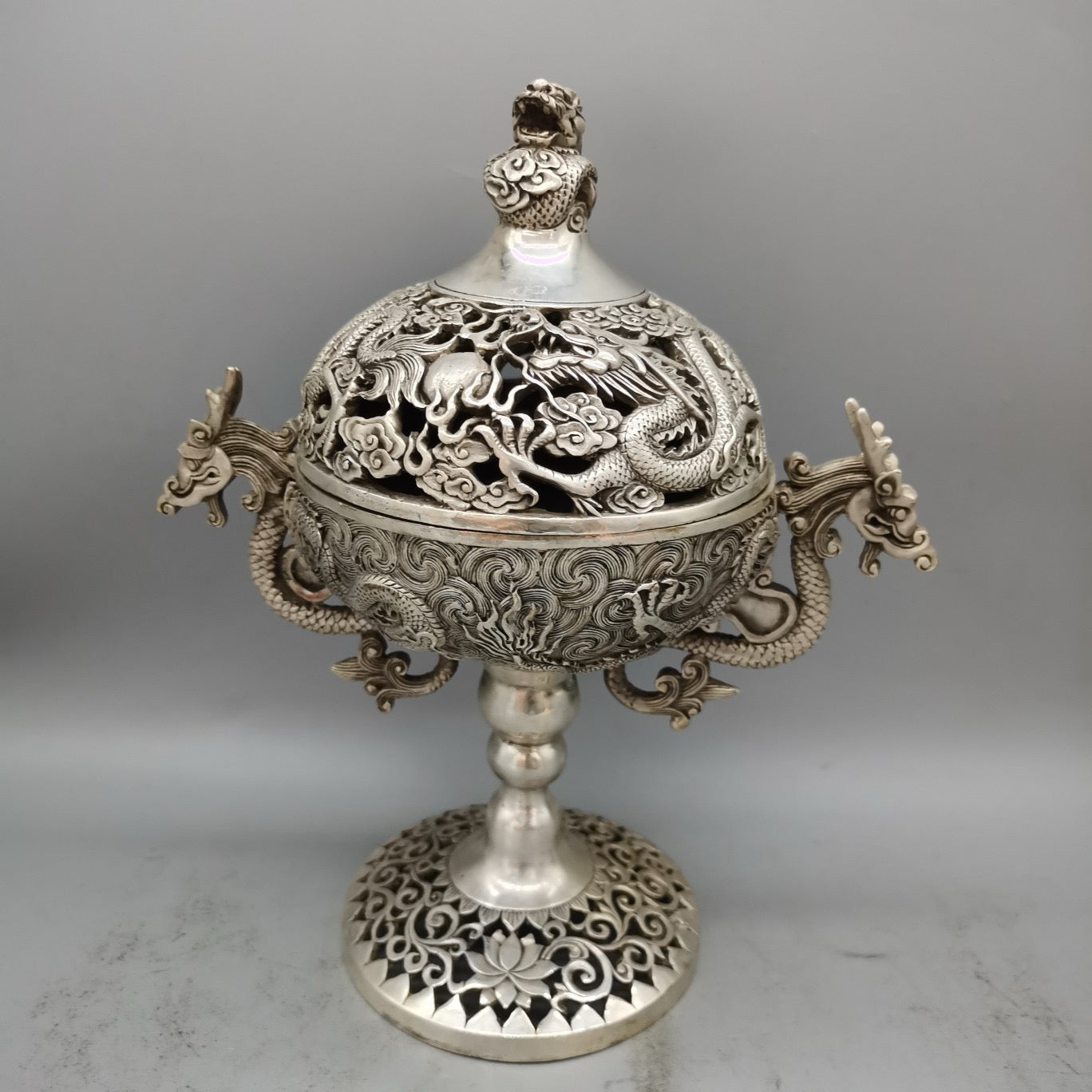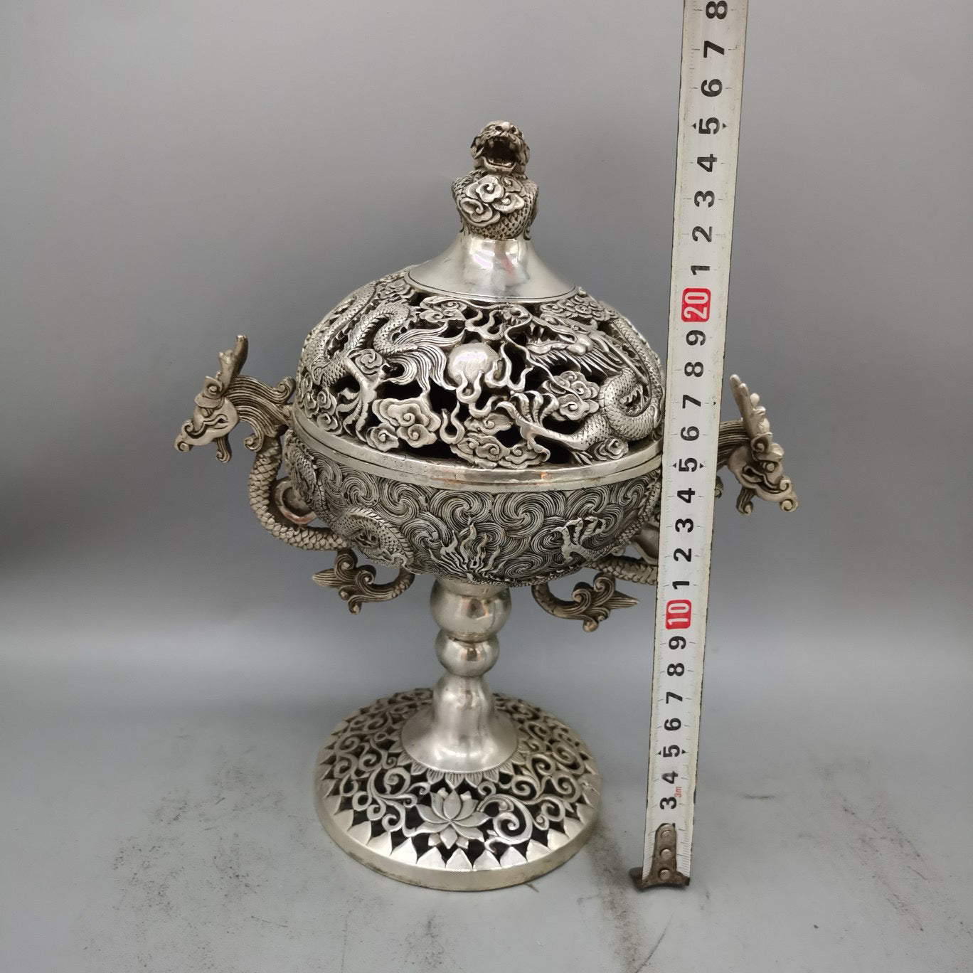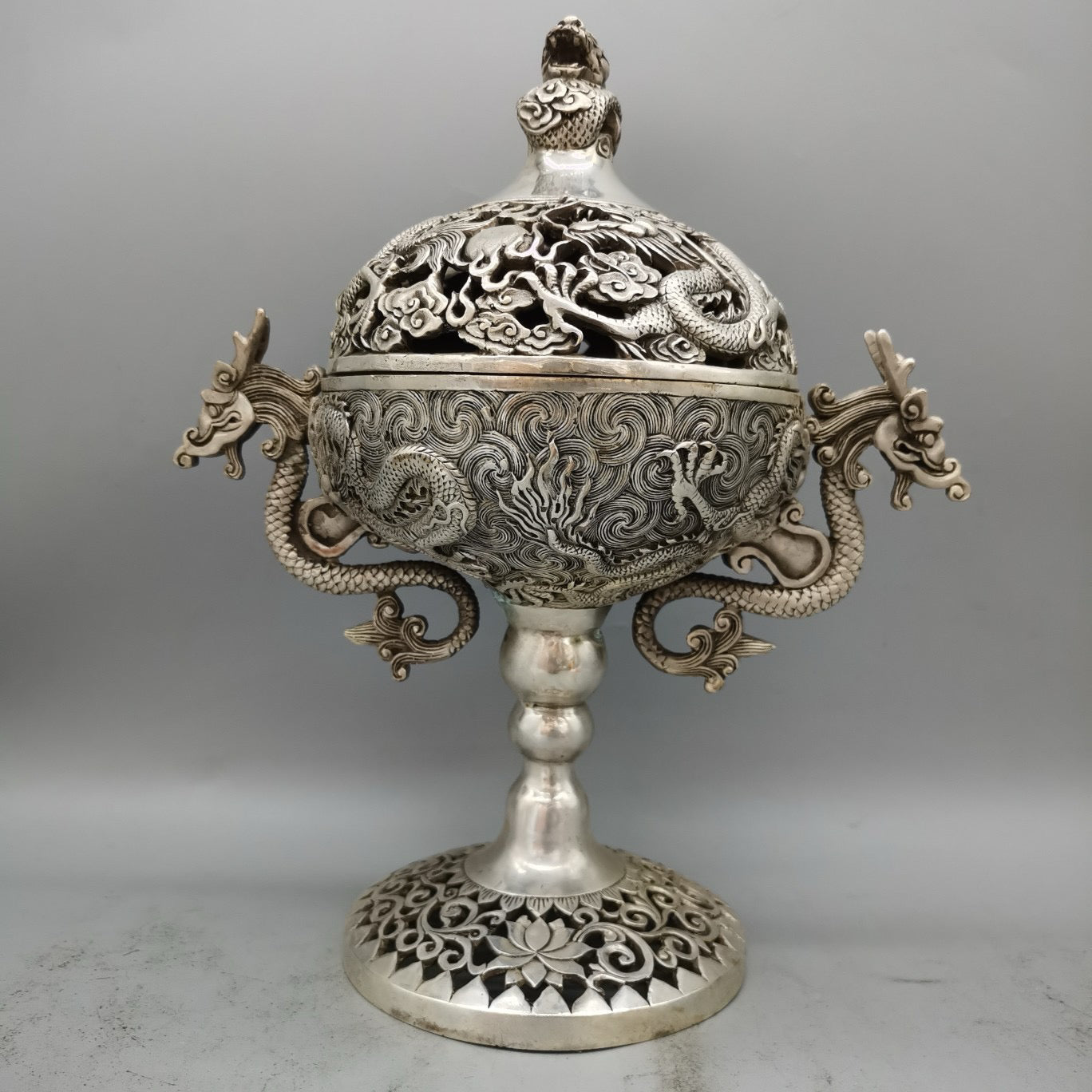 White copper high double dragon ear incense burner