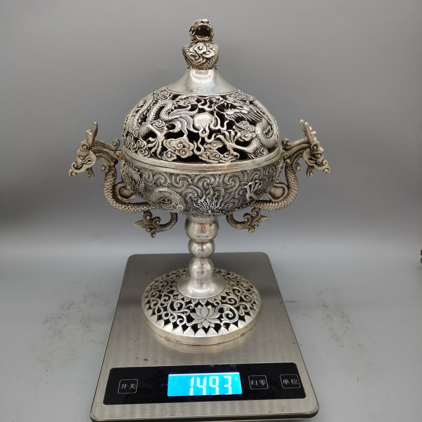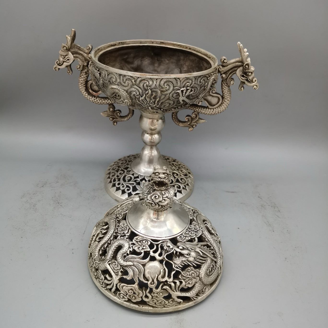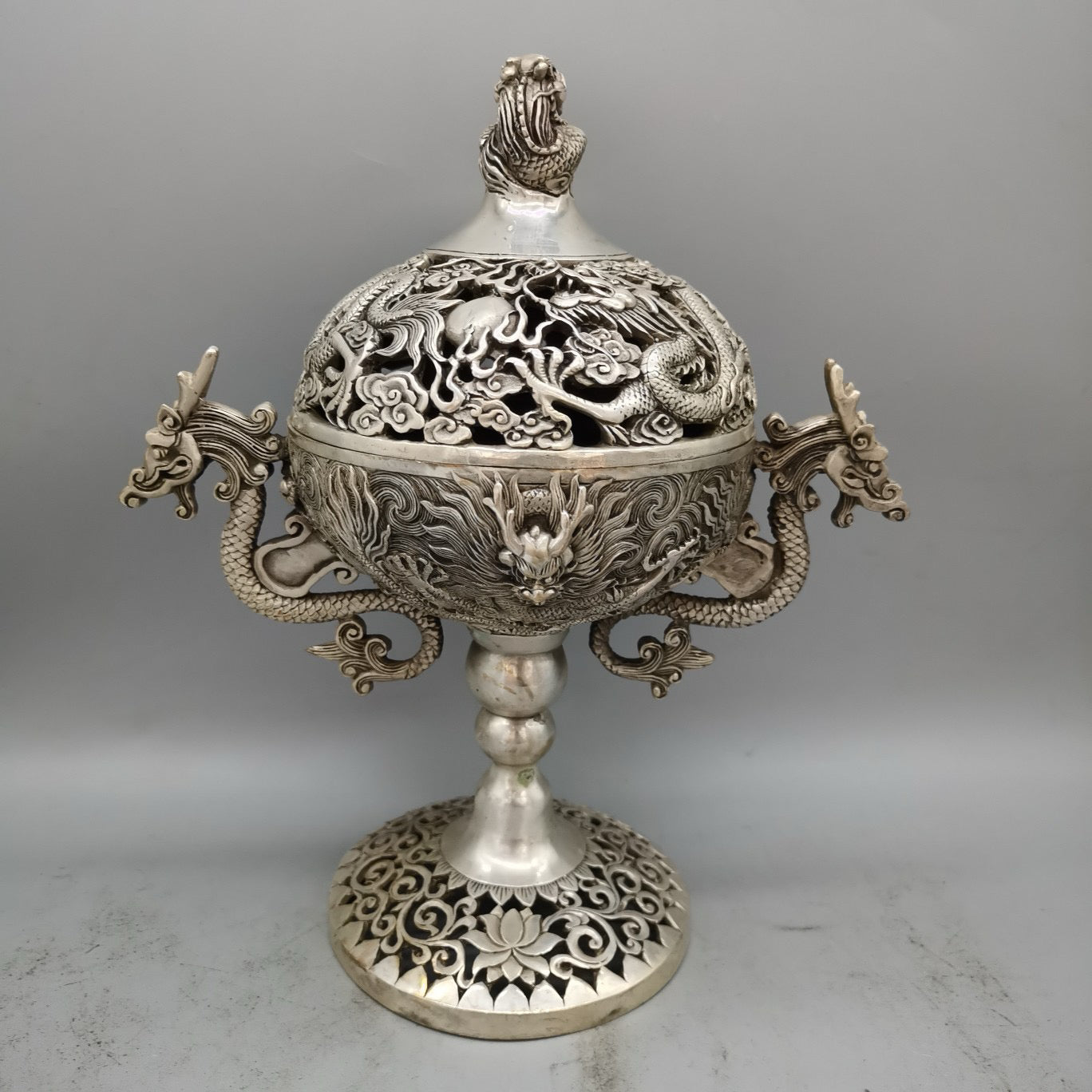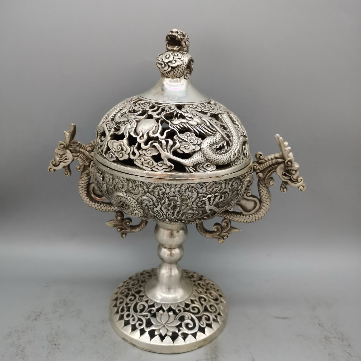 White copper high double dragon ear incense burner