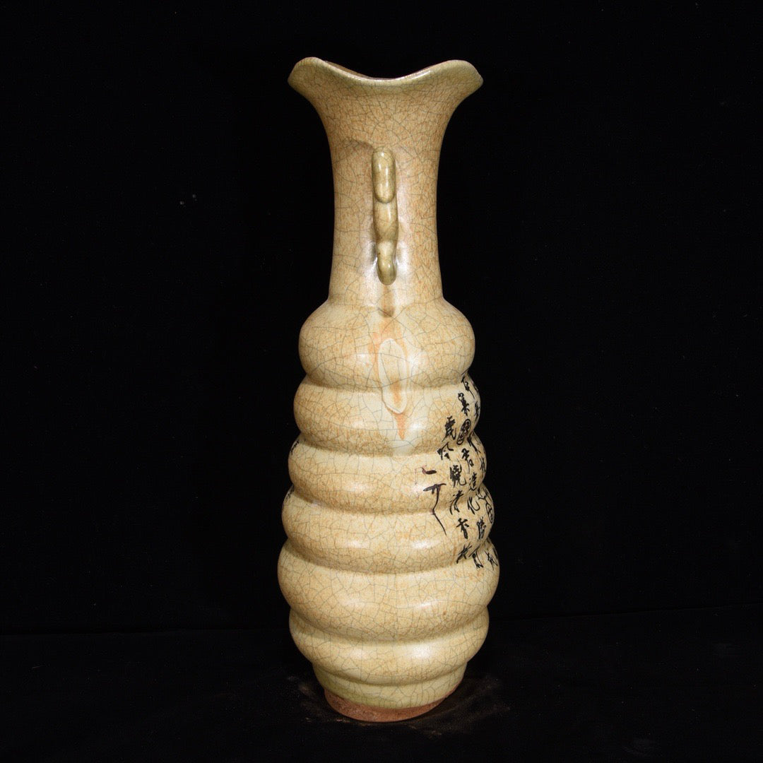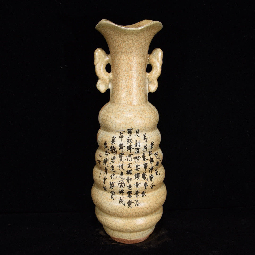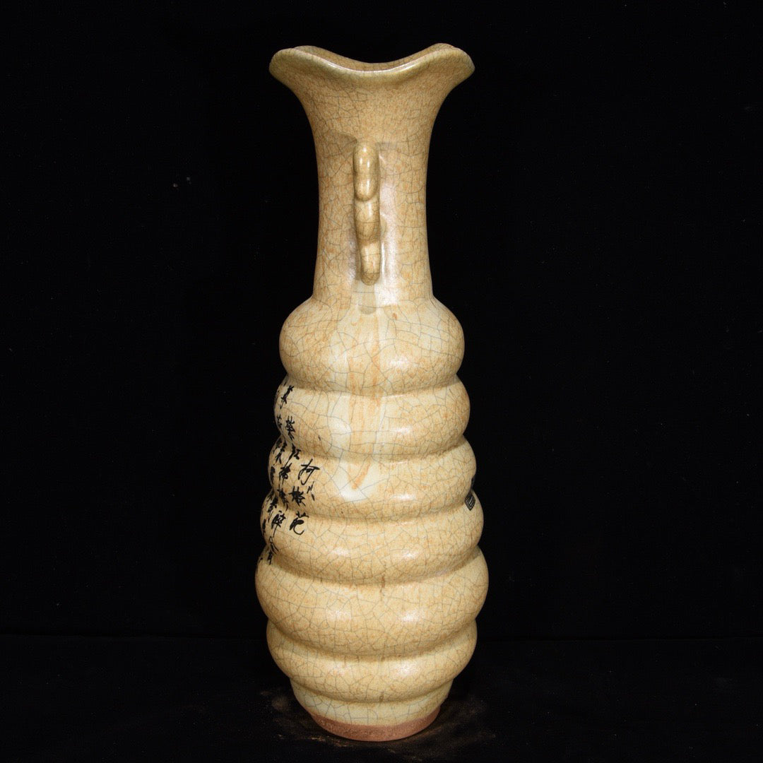 Yellow Inscription Poetry Pattern Thread Double Ear Flower Mouth Bottle