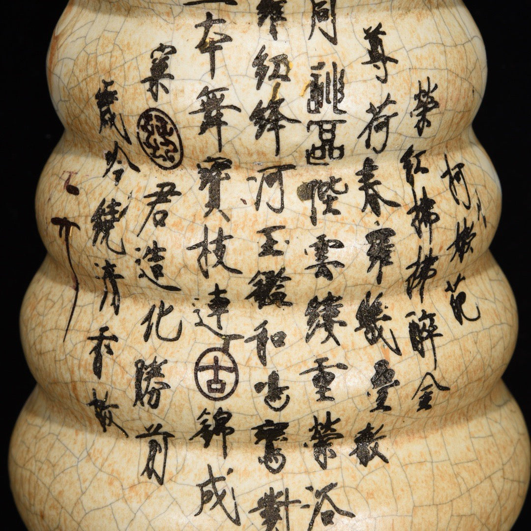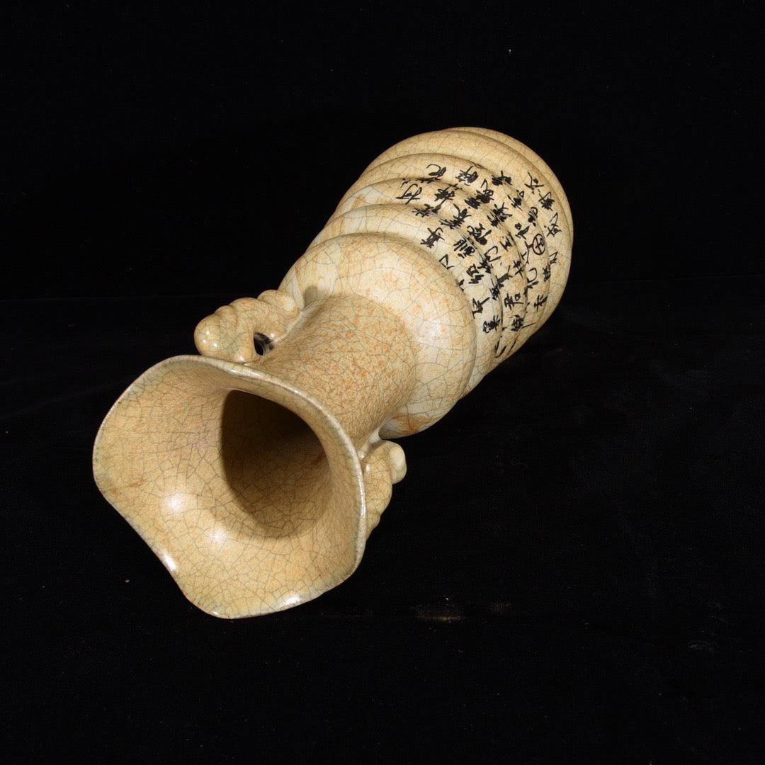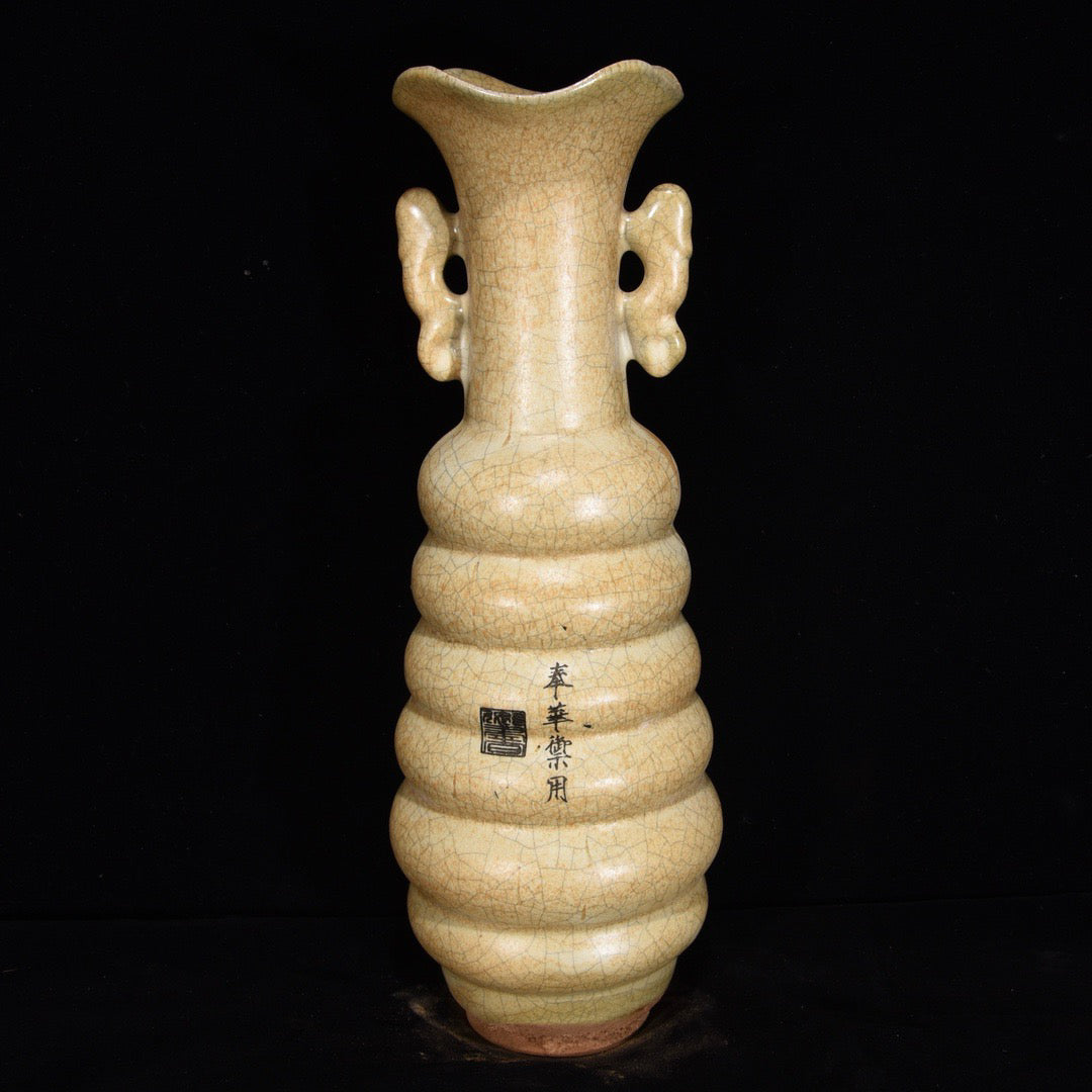 Yellow Inscription Poetry Pattern Thread Double Ear Flower Mouth Bottle